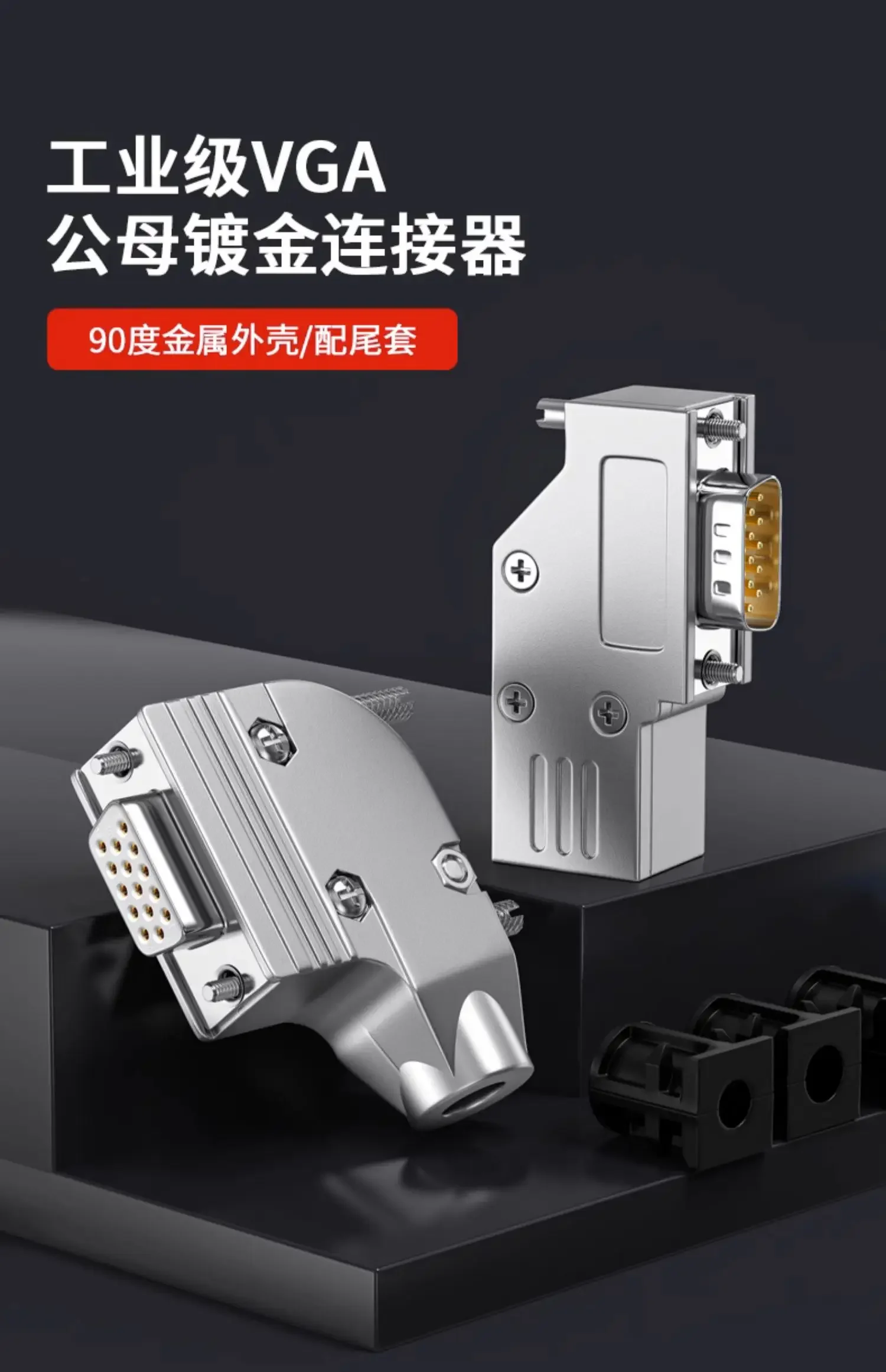 Conector de soldadura VGA de 3 filas, junta de cabeza de 15 Pines, enchufes de pantalla de carcasa de 90 grados, conectores macho y hembra HDB15 de grado Industrial