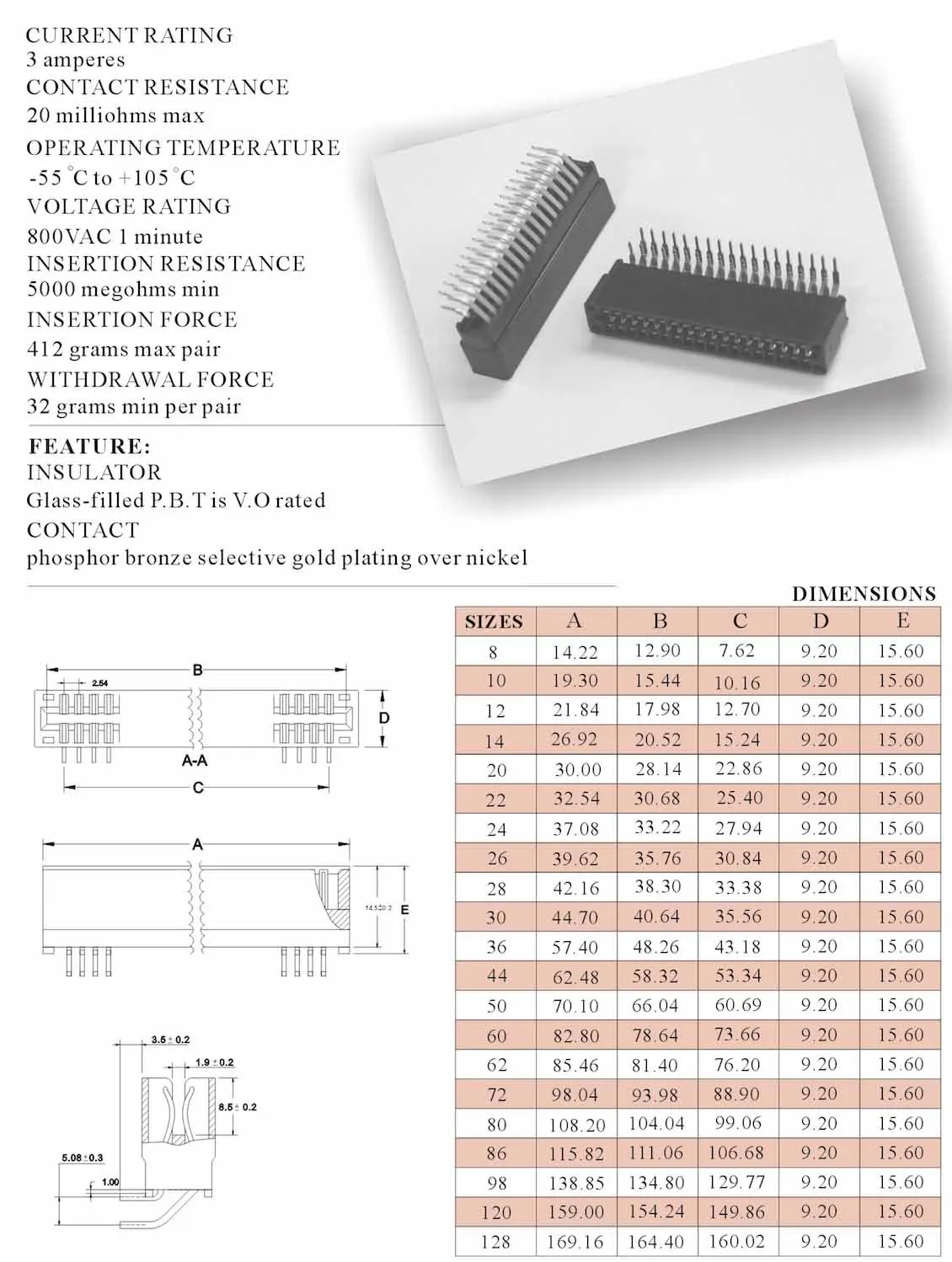 Comprar Conector de tarjeta de paso de 2,54mm, ranura de Bus, enchufe de dedo dorado, placa PCB, Pin recto, 10 Uds.