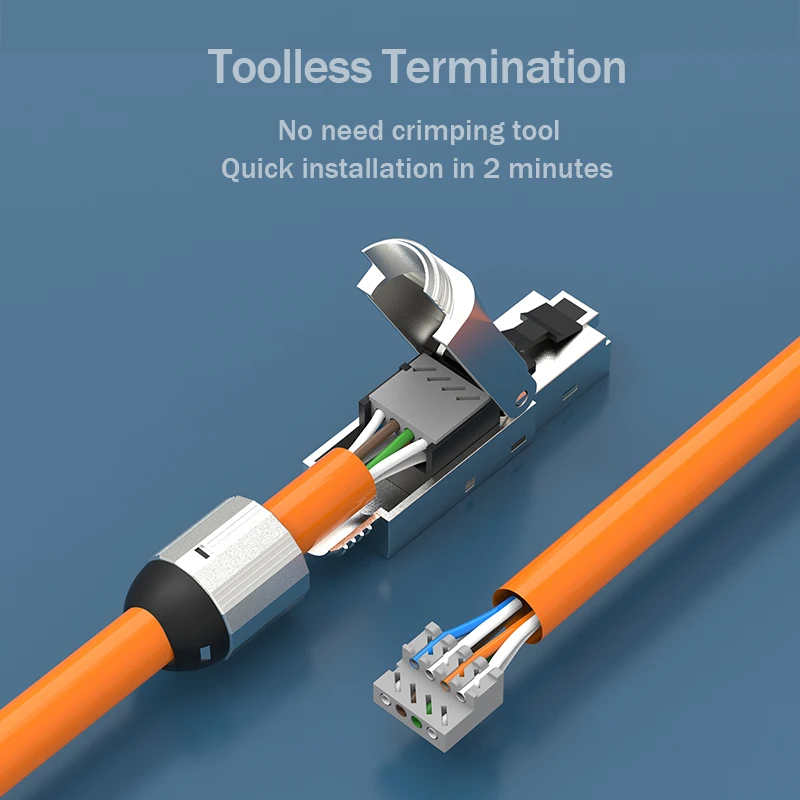 Conector de terminación rápida blindado con enchufe de campo sin herramientas RJ45 de diseño Premium para Cables de instalación sólidos Cat7 6A CAT6 22 23AWG