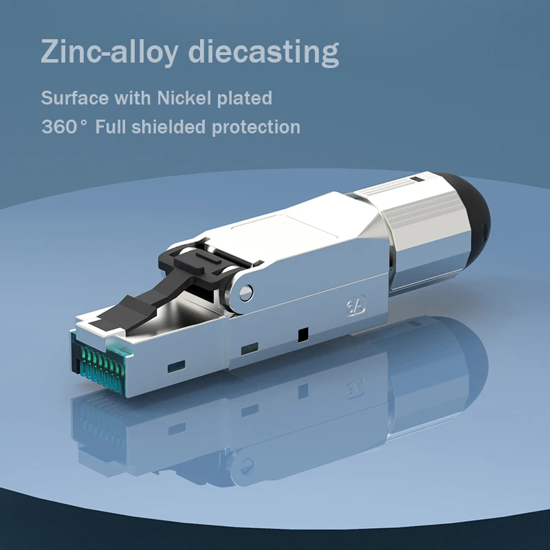 Comprar Conector de terminación rápida blindado con enchufe de campo sin herramientas RJ45 de diseño Premium para Cables de instalación sólidos Cat7 6A CAT6 22 23AWG