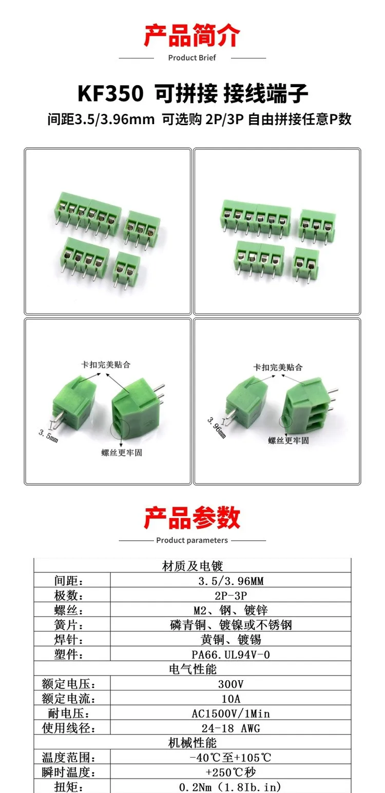 Comprar Conector de Terminal de conexión KF3.96, 10 piezas, 2P, 3P, 300V, 3,96 MM, espaciado, unidad de conexión, Unión dividida, Tornillo de montaje de agujero pasante