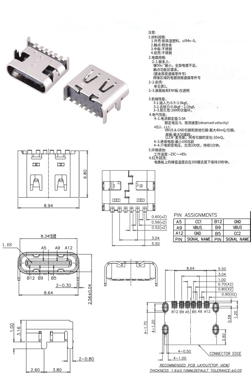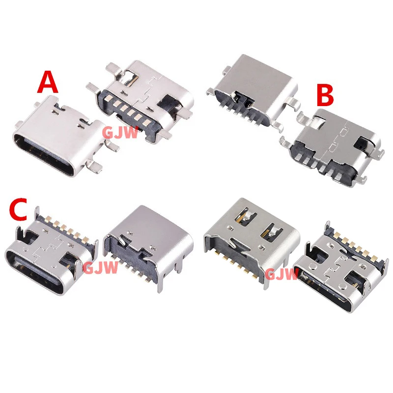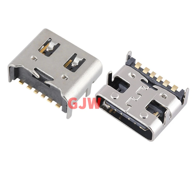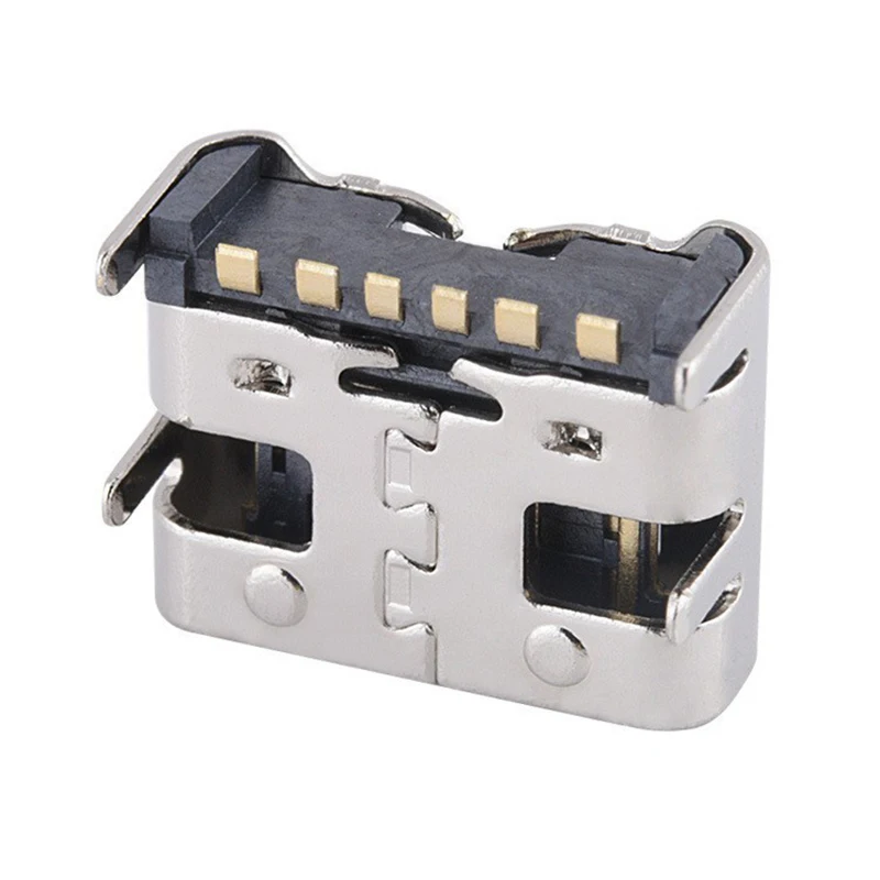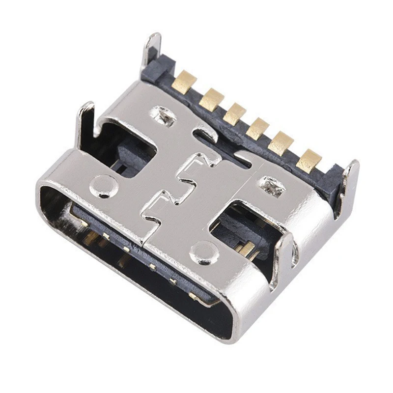 Conector tipo C de 6 pines, 4 pies DIP SMT, transferencia de datos, conector hembra, Terminal de teléfono, Notebook, ordenador portátil, carga trasera, 10 unidades