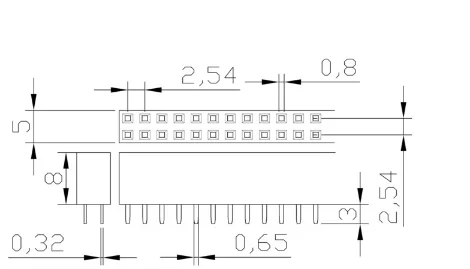 Conector de tira de PCB de aguja recta de doble fila, 2,54mm, 20/40mm, 2X2/3/4/5/6/8/10/12/13/15/2,54 Pines, hembra