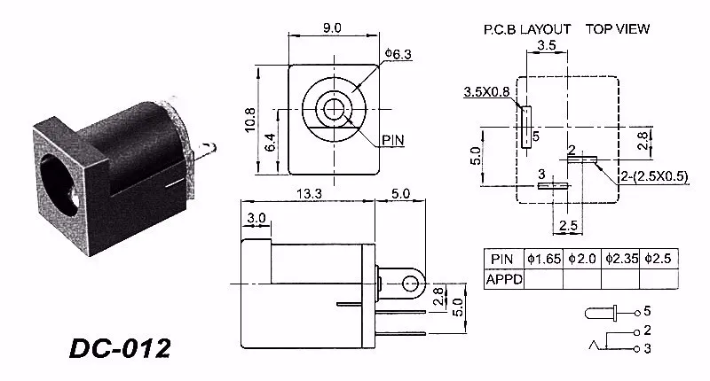 Conector de toma de corriente CC de 50 piezas, 5,5x2,1mm, 5,5x2,1mm, adaptador de conector de montaje en Panel DC012, PIN de 180 grados