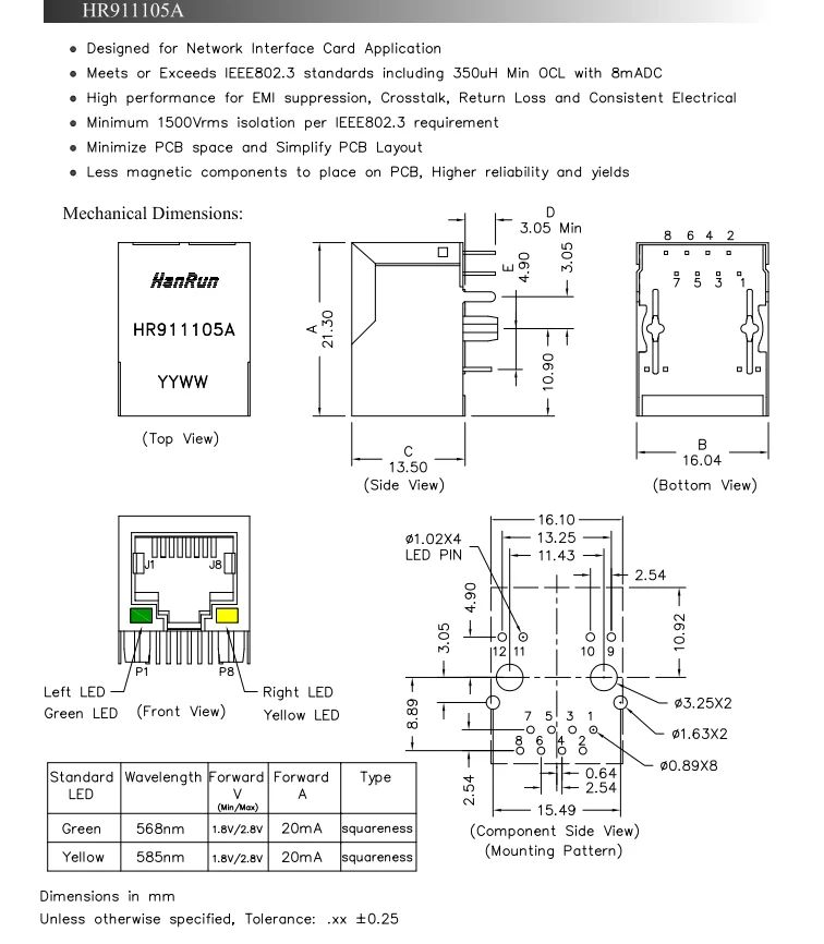 5 piezas conector RJ45 de puerto único HR911105 HR911105A