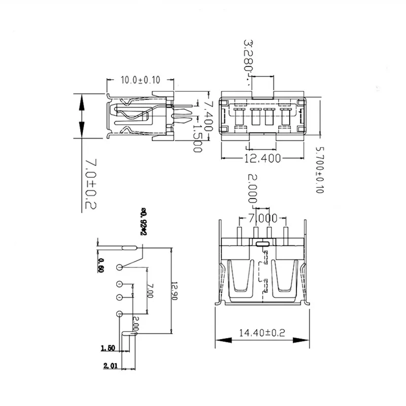 Comprar Conector USB 100 hembra tipo A, 4 pines, PCB, 2,0 grados, bricolaje, 180 Uds.