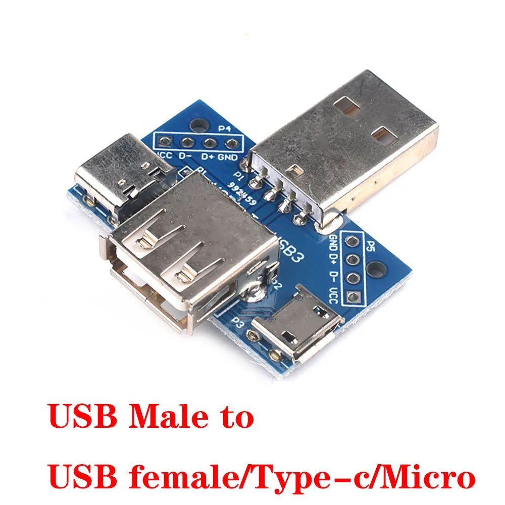 Conector USB 2,0 3,0 A hembra USB A macho Micro Mini tipo c, interfaz A DIP, Adaptador convertidor, placa de ruptura
