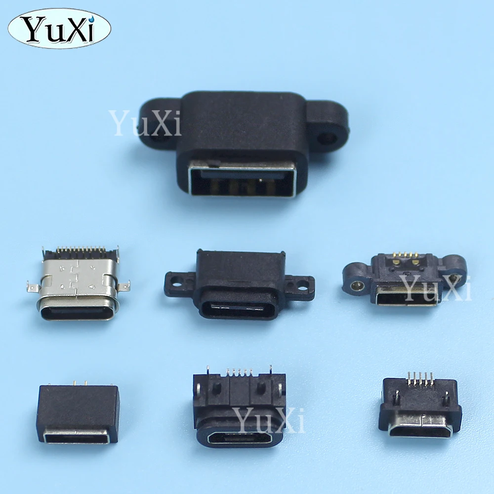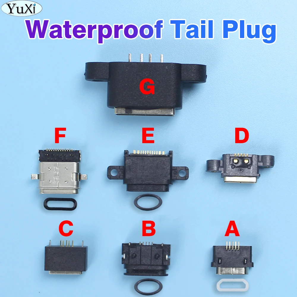 Conector USB 2,0 de 2 piezas tipo C hembra, enchufe impermeable, anillo de goma, puerto de carga rápida de alta corriente, enchufe trasero para piezas de reparación de teléfonos