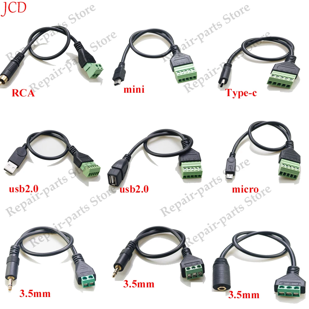 USB 2.0 hembra B Micro usb mini usb tipo C macho a 5 pines hembra conector de tornillo con Cable adaptador de enchufe Terminal de escudo 1 pie