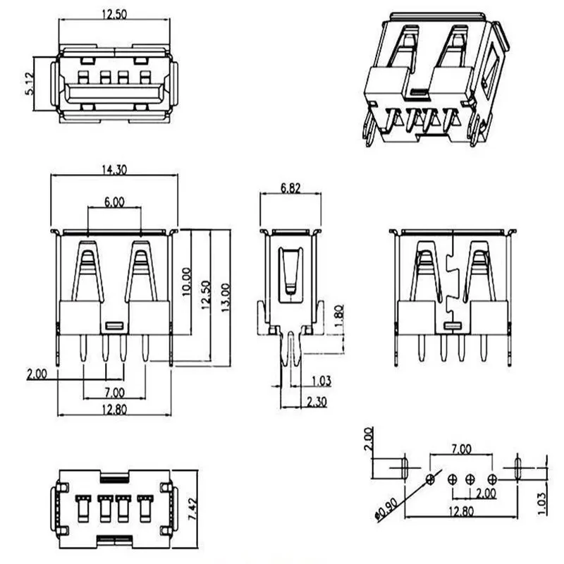 Comprar Conector USB 2,0 hembra tipo A, 4 pines, PCB, 180 grados, bricolaje, 50 Uds.