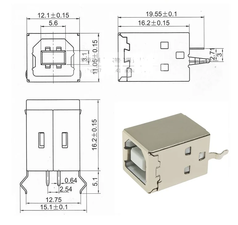 Comprar Conector USB 2,0 hembra tipo B, conector de 90/180 grados, conector PCB de soldadura, interfaz de impresora D, blanco/negro, 5 uds.