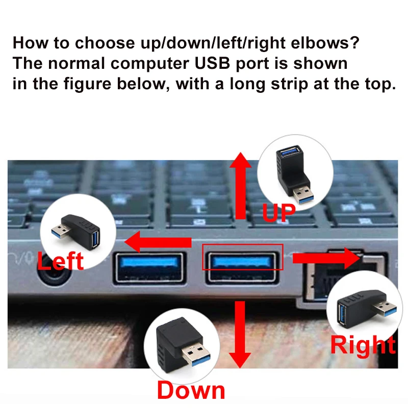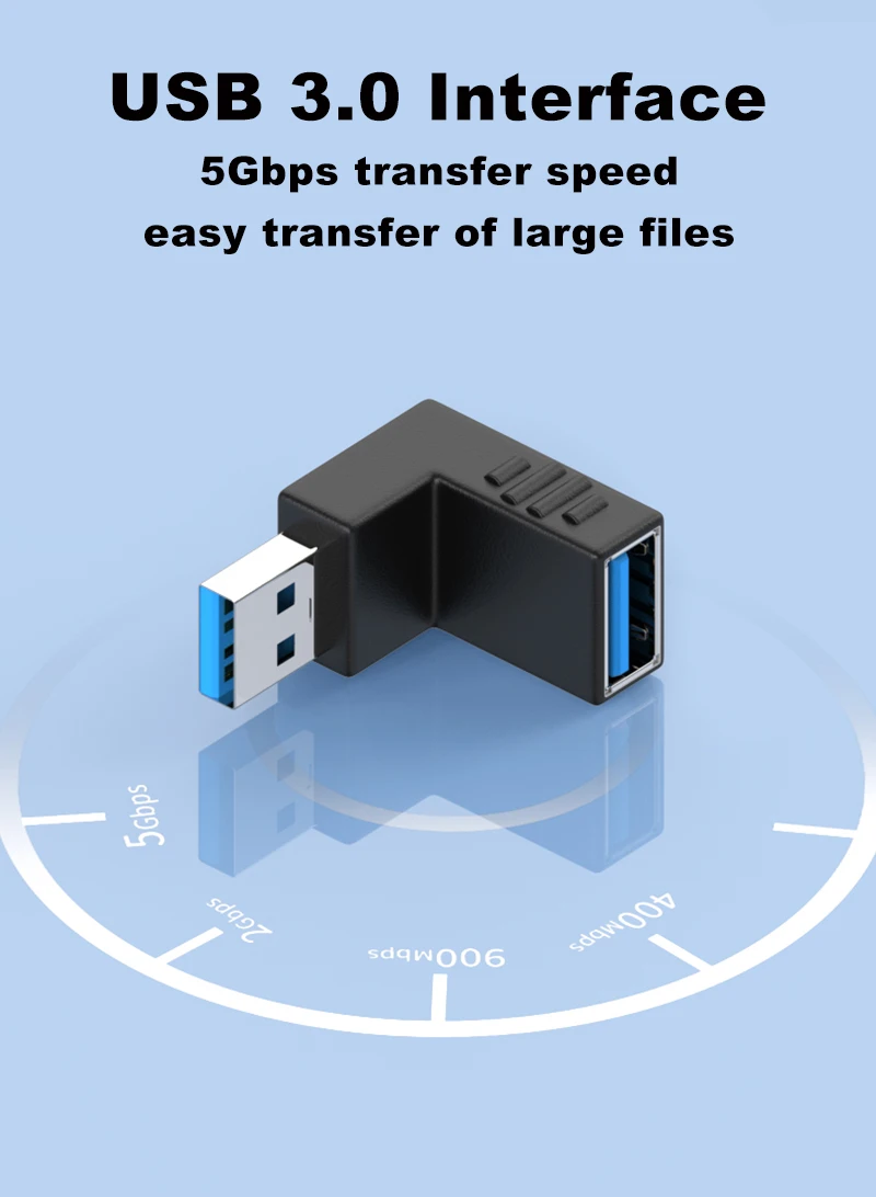 Nombre del producto: USB 3,0 Cable de extensión macho a hembra Adaptador USB Orbital USB hembra Adaptador de 90 °