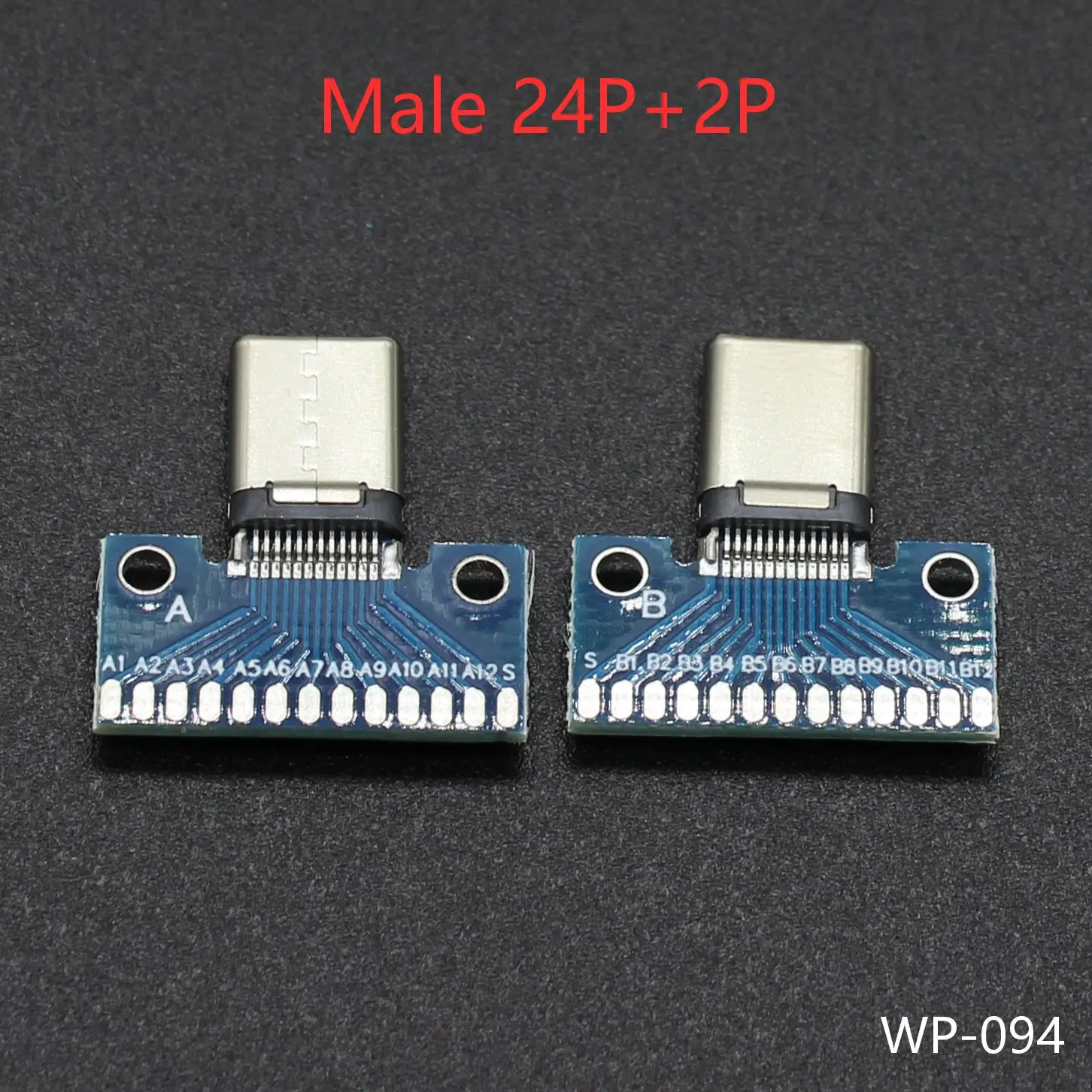 1 Uds. Conector USB 3.1 tipo C 24 + 2P adaptador de receptáculo macho a Cable de soldadura placa de prueba PCB USB-C 24P + 2P