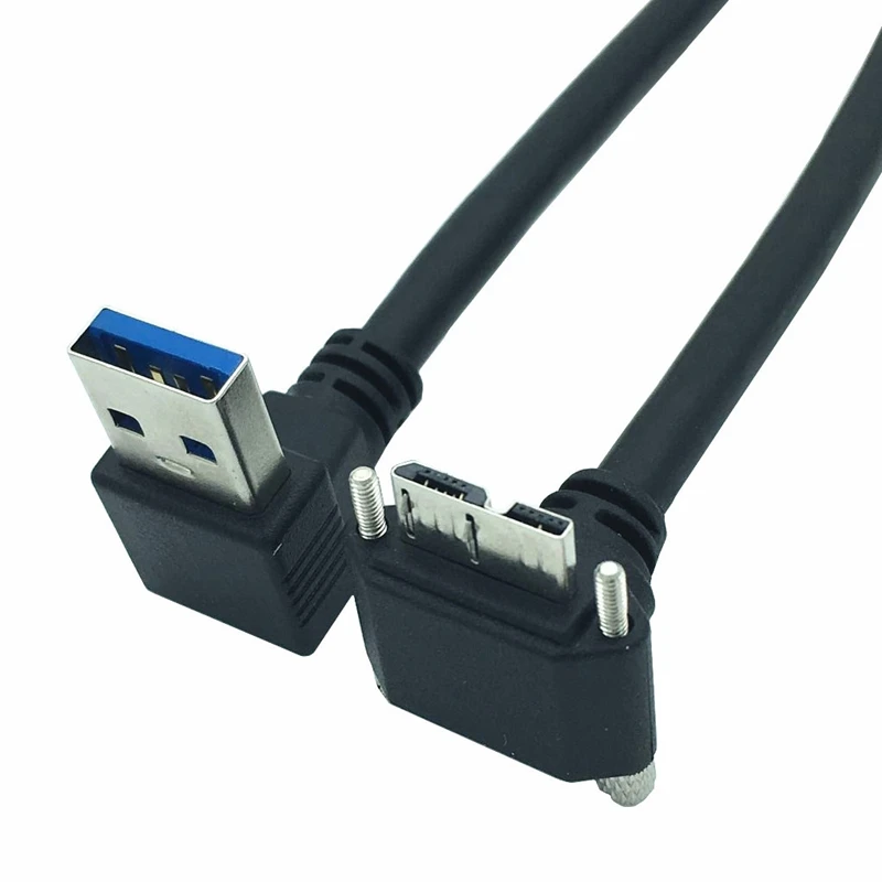 Comprar Conector USB 3,0 A Micro B, conector en ángulo recto con tornillos de bloqueo de montaje, Cable corto de 25cm