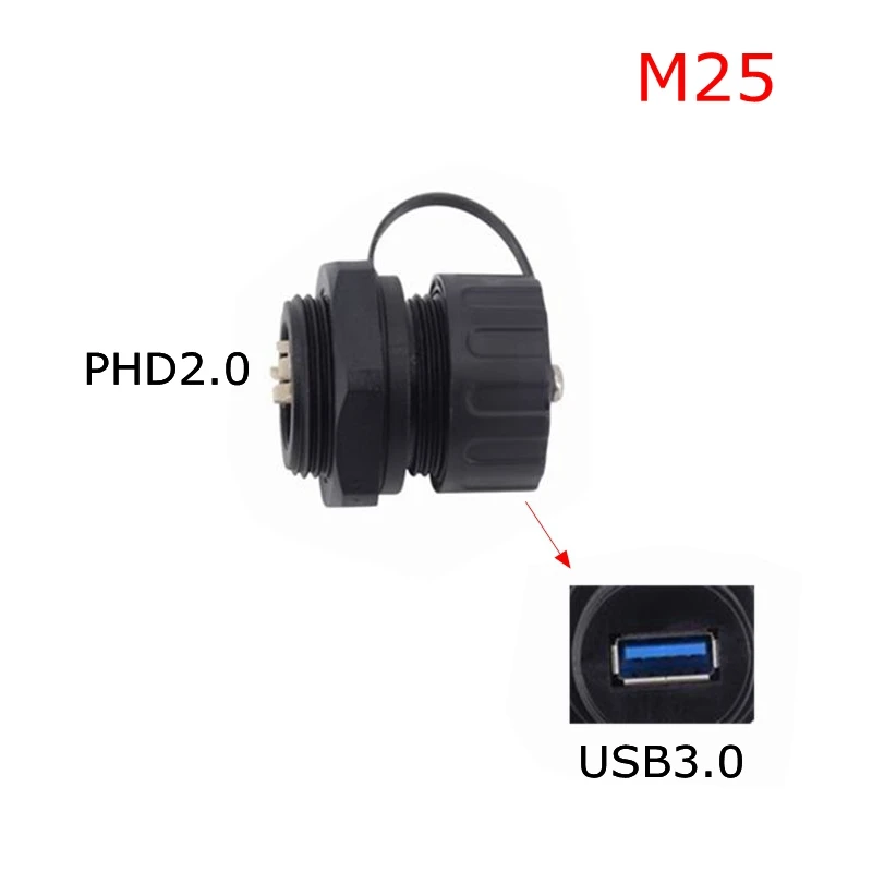 USB 3,0 enchufe de aviación a prueba de agua A enchufe hembra M20 M25 adaptador de montaje en Panel a 10 pines PHD A hembra IP68 conector impermeable