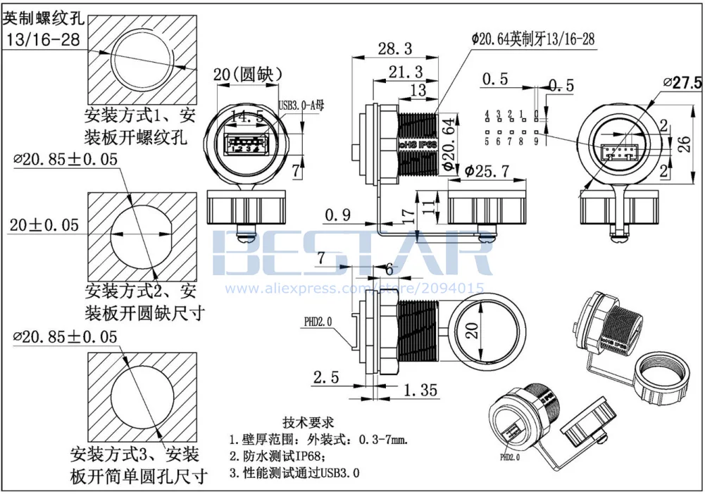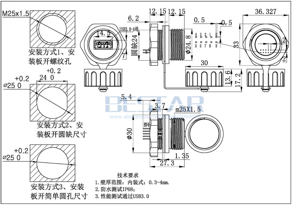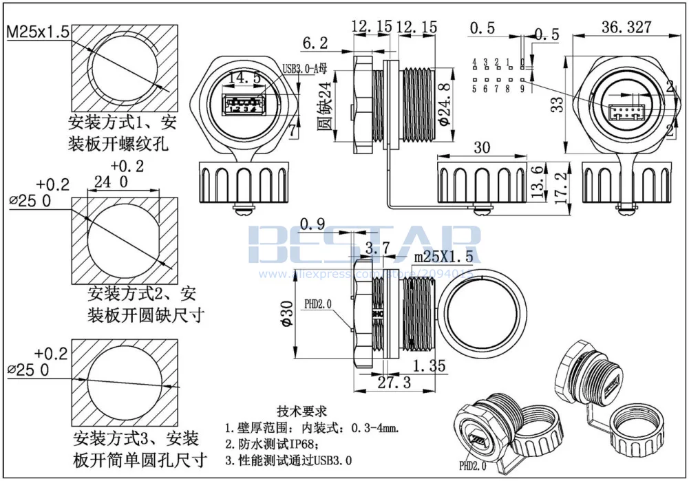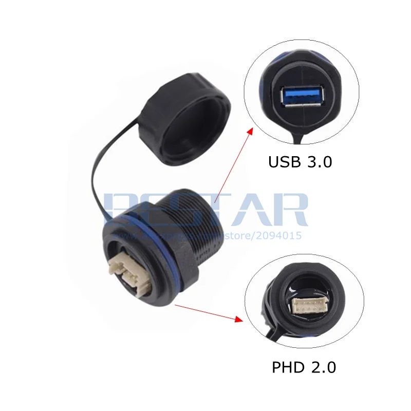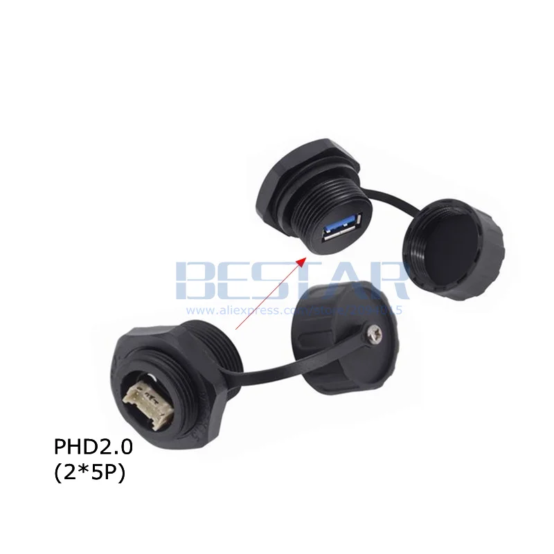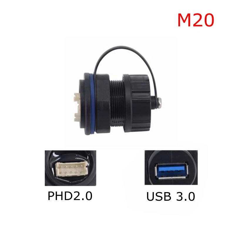 Comprar Conector USB 3,0 A prueba de agua, enchufe hembra M20 M25, adaptador de montaje en Panel A 10Pin PHD 2,0 A hembra IP68, enchufe de aviación resistente al agua