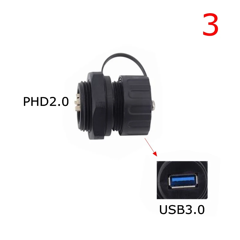 3. Conector USB 3,0 tipo A hembra a PHD 2,0 hembra impermeable