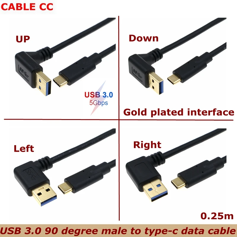 Comprar Conector USB 3,0 chapado en oro, conector tipo A de ángulo de 90 ° A USB 3,1 tipo C macho, Cable de sincronización y carga de datos de 5Gbps