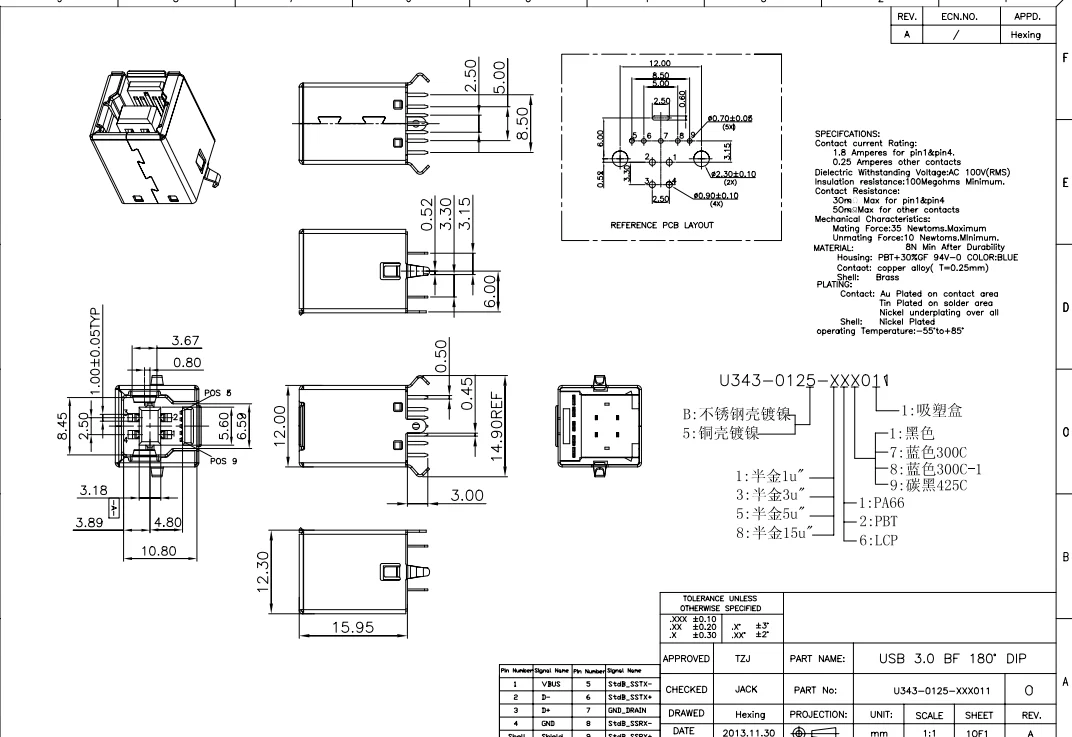 Comprar Conector USB 3,0 hembra/hembra BF, interfaz de impresión tipo B enchufable de 180 grados, 180 grados, 1 unidad por lote