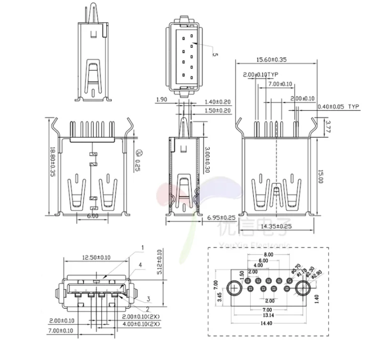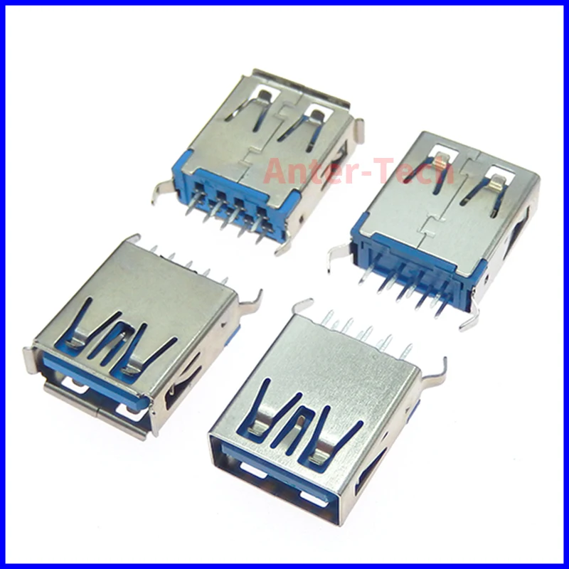Comprar Conector USB 3,0 tipo A de 5 piezas, transmisión de datos de alta velocidad, conector USB 3,0 hembra, 180 grados, Vertical, AF