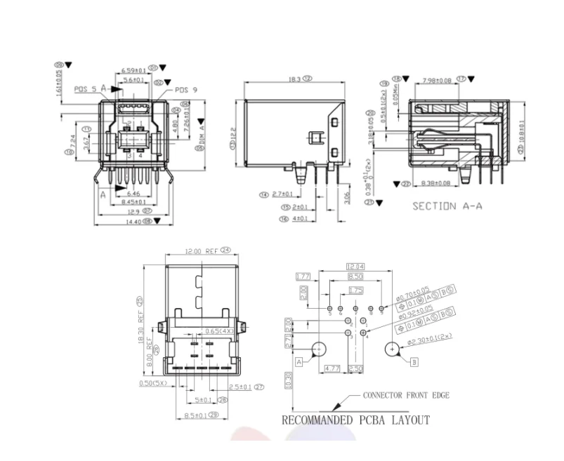Comprar Conector USB 3,0 tipo B para impresora, conector hembra, piezas, ángulo recto, Terminal AF, 2 USB-B