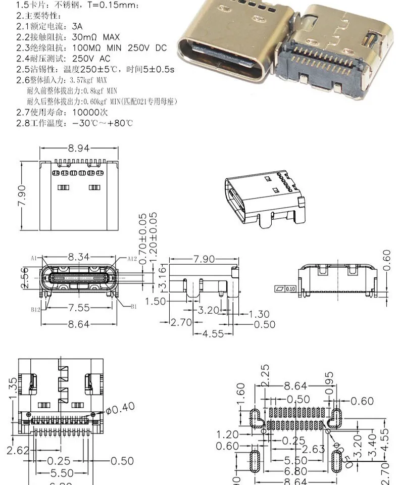Comprar Conector USB 3,1 de 24 pines tipo C, conector hembra, micro USB, puerto de carga