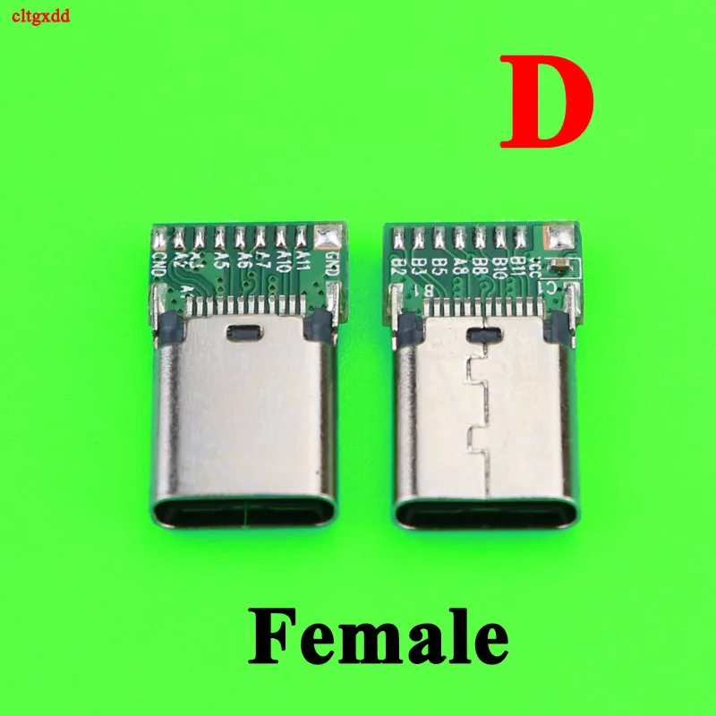 Comprar Conector USB 3,1 tipo C, adaptador de receptáculo de enchufe macho y hembra de 24 pines para soldar cable y cable, módulo de soporte de placa PCB de 14 y 24 P, 2 uds.