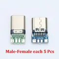 10 Uds USB 3.1 tipo C conector macho hembra adaptador de receptáculo a Cable de soldadura 24/14 pines soporte placa PCB puerto Jack