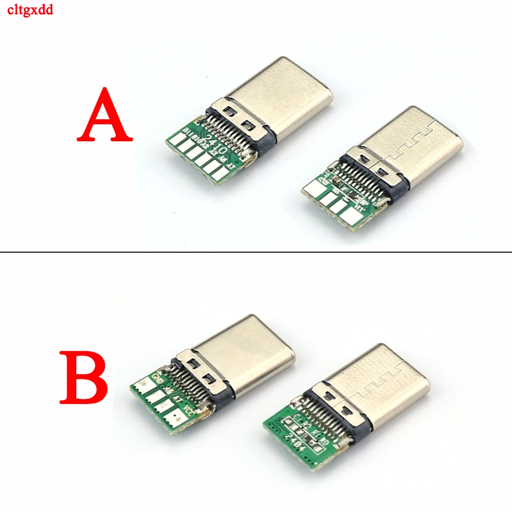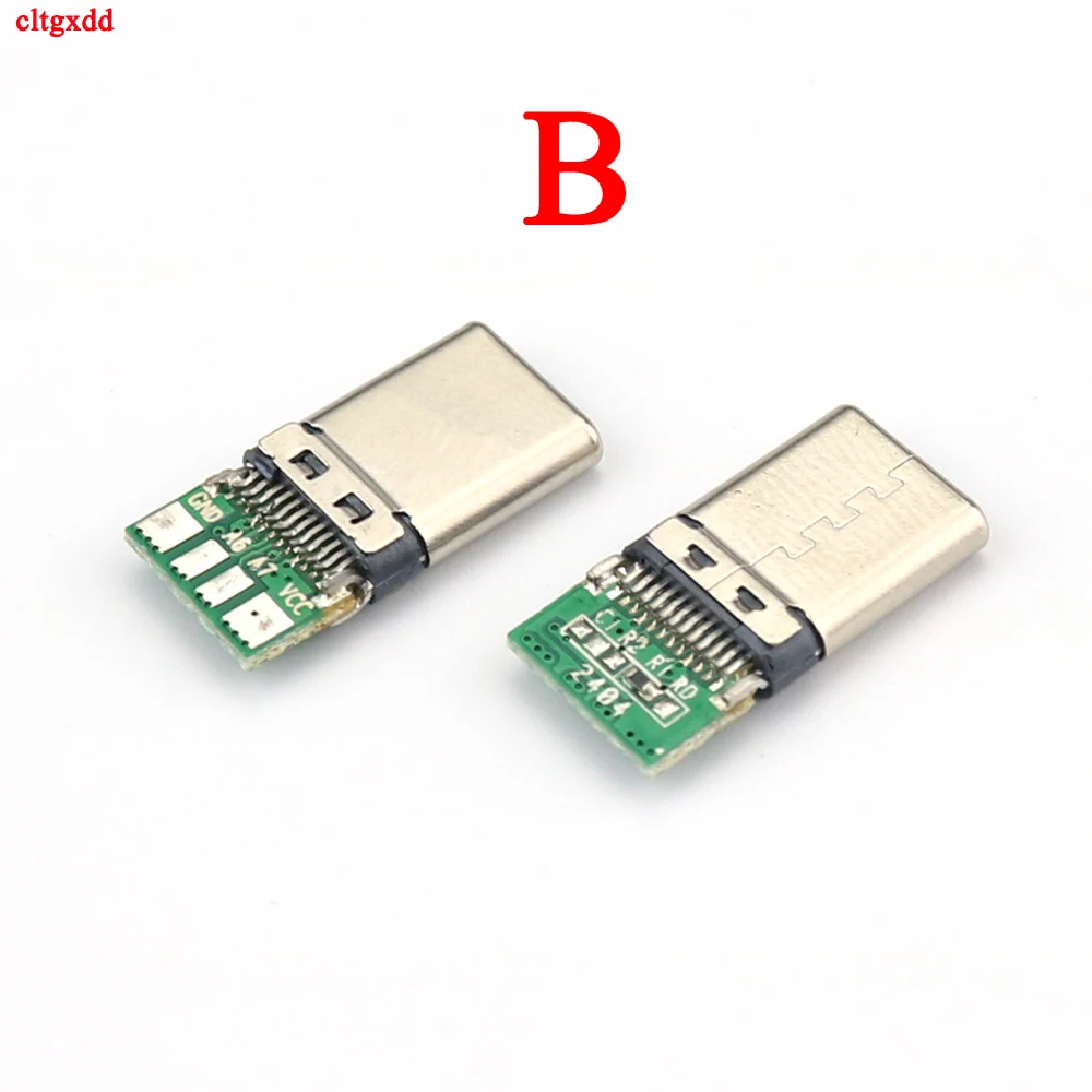 10 unids/lote tipo C conector USB 3,1 de 12 pines enchufe macho de carga rápida para soldar alambre y Cable Módulo de placa PCB 56K resistencia