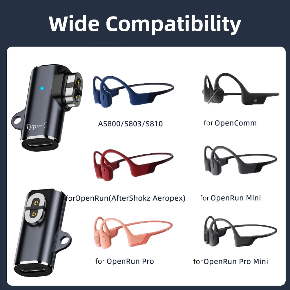 1.Diseñado específicamente:Nuestro adaptador de carga magnético es compatible con los auriculares SHOKZ, presenta un diseño lateral único o de flexión media compatible con varios modelos, como compatible con AfterSHOKZ AS800 S803, compatible con SHOKZ OpenRun Air (lançado en 2024), compatible con SHOKZ OpenRun, OpenRun Pro/ Mini y auriculares deportivos BT de conducción ósea OpenComm2.Esto garantiza un ajuste perfecto y una eficiencia de carga óptima para su dispositivo específico.