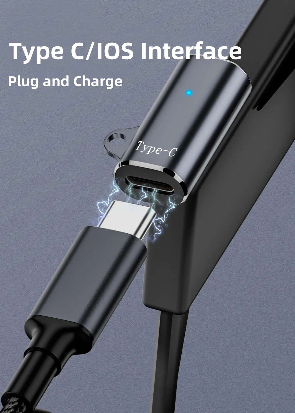 4.Compacto y portátil:El convertidor magnético del cable del cargador cuenta con un tamaño compacto que no ocupa mucho espacio, lo que lo hace perfecto para viajes o viajes de negocios.Con un práctico diseño de orificio para cordón, es fácil de transportar, lo que garantiza que sus auriculares estén siempre cargados y listos para usar sin necesidad de cables de carga adicionales, lo que le ahorra espacio de almacenamiento.
