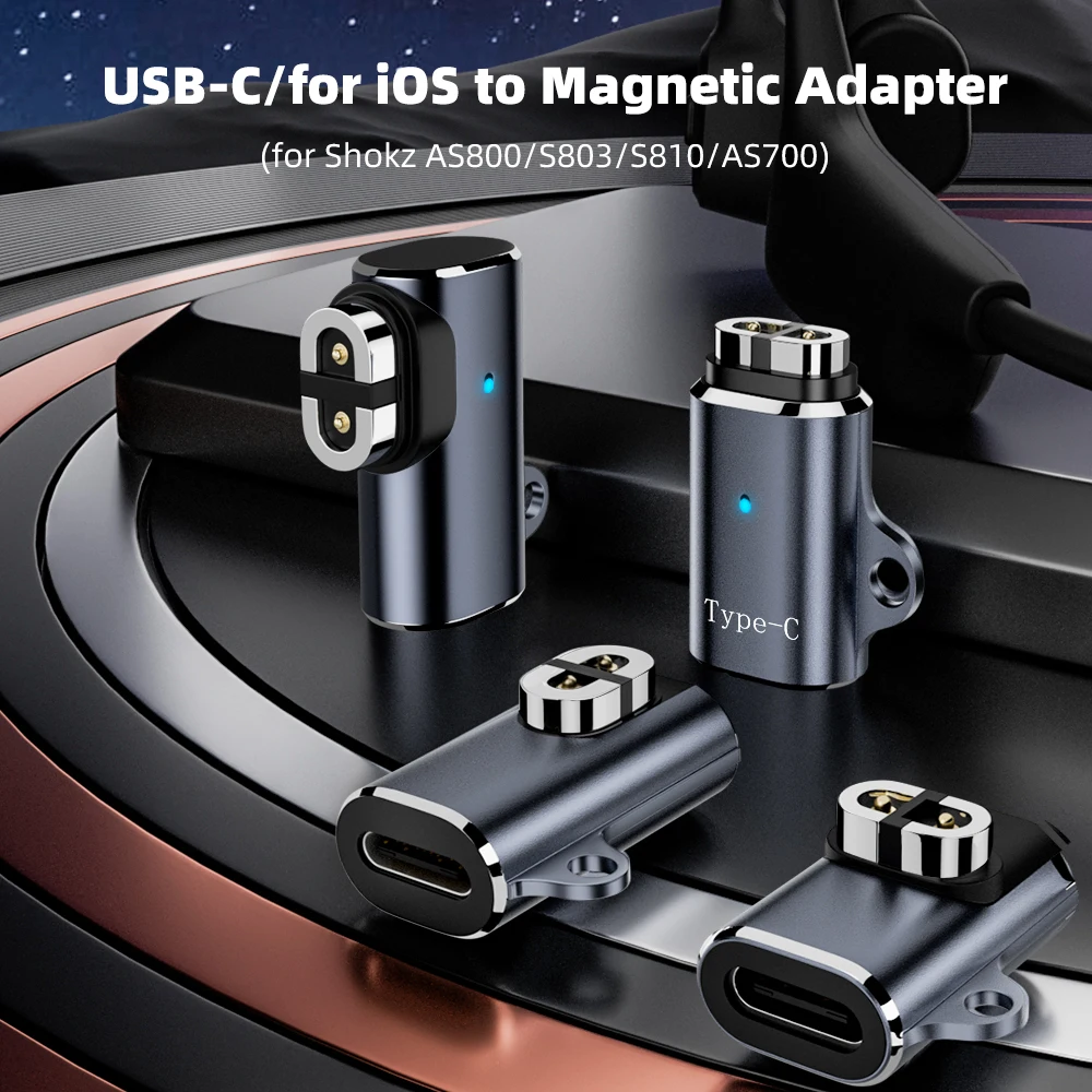 Conector adaptador USB C/para iOS a magnético, convertidor de cargador de auriculares de conducción ósea de 90 grados para Shokz AS800/S803/S810/AS700
