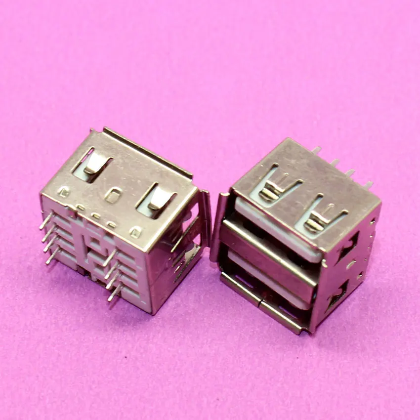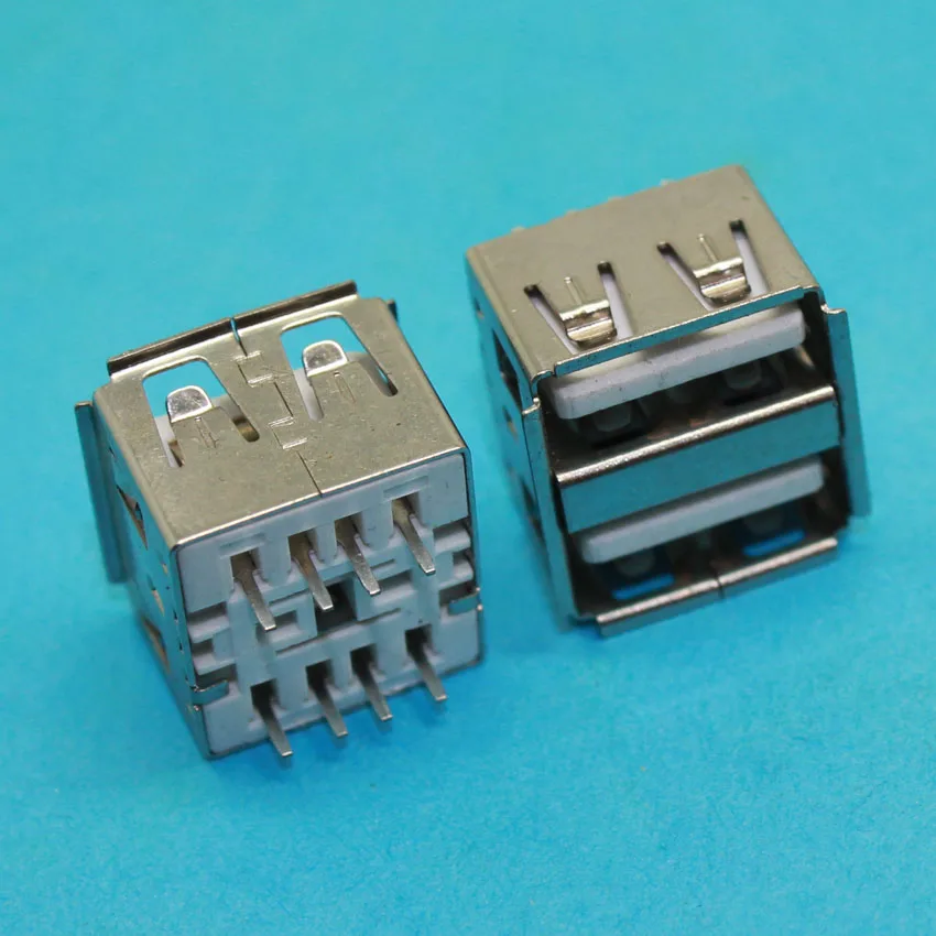 Comprar Conector USB doble de cuerpo corto, conector hembra Vertical de 180 grados, USB 2,0, blanco, 8P, 1 unidad