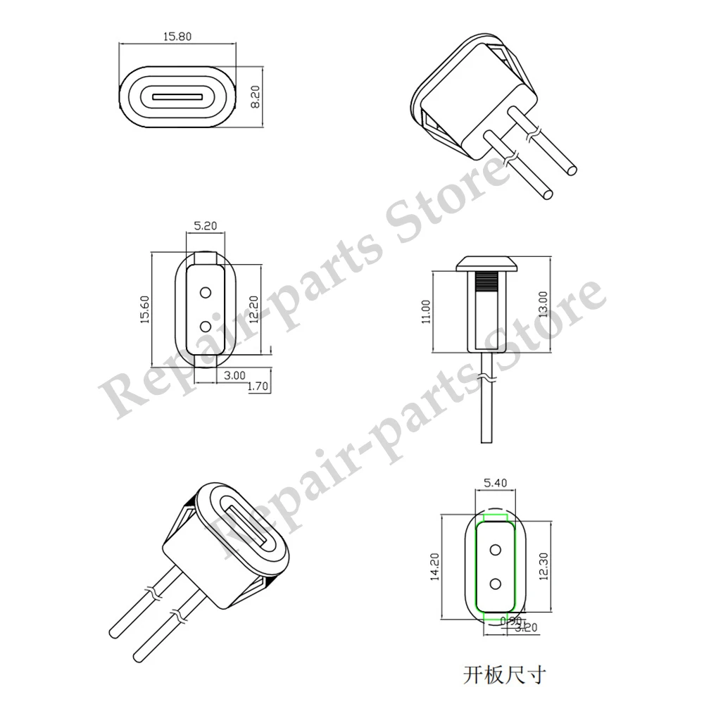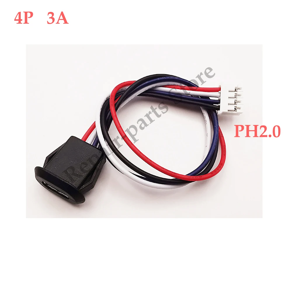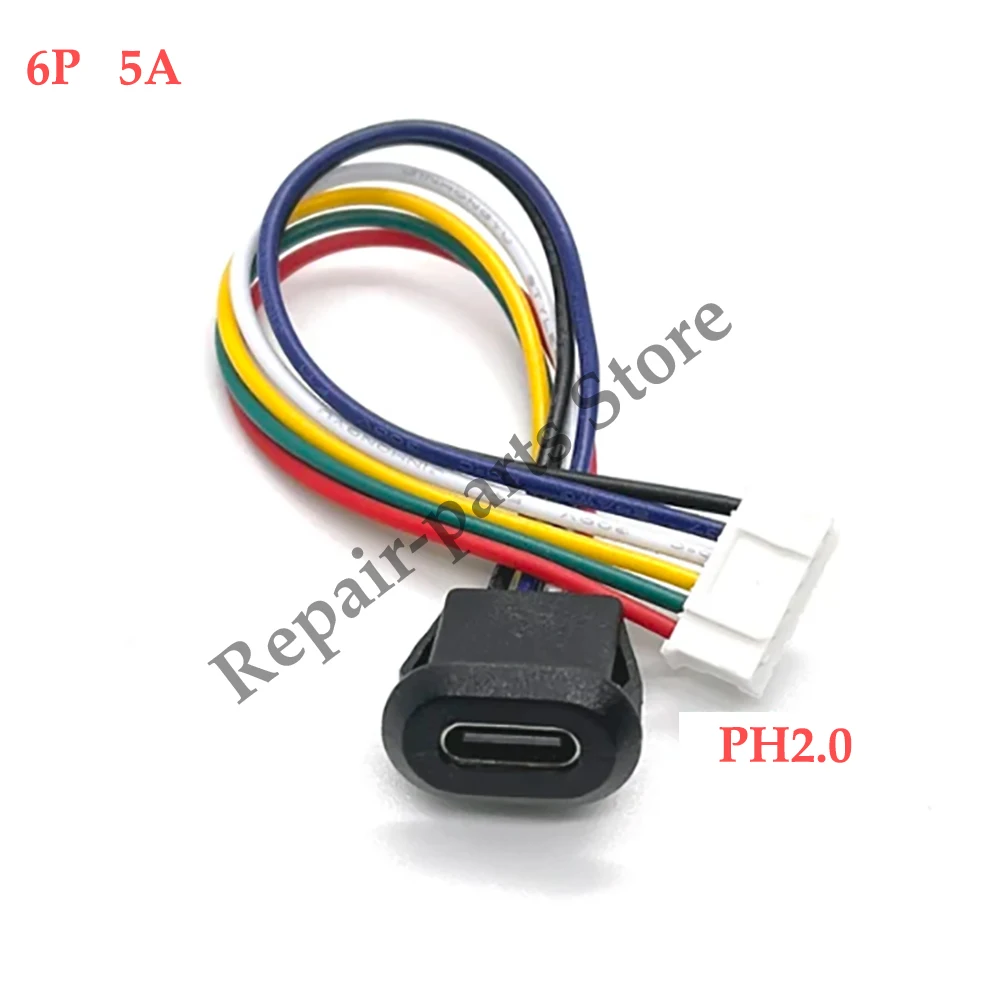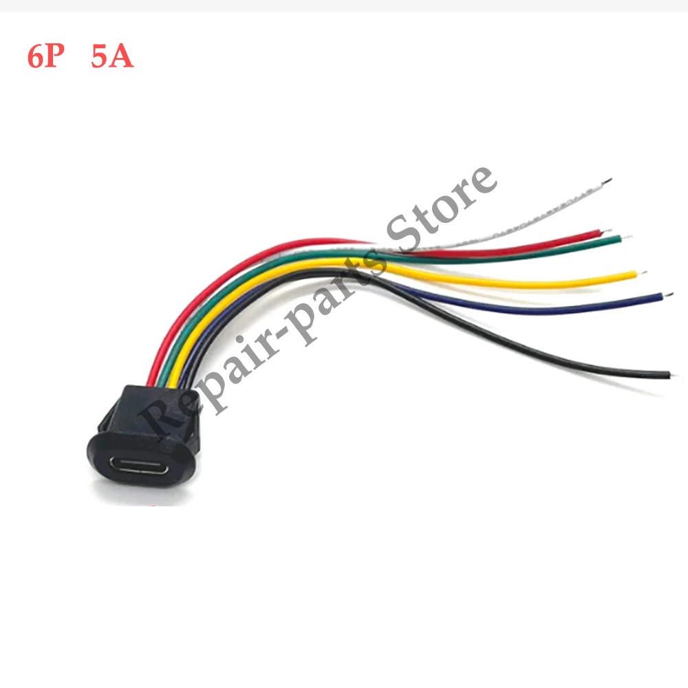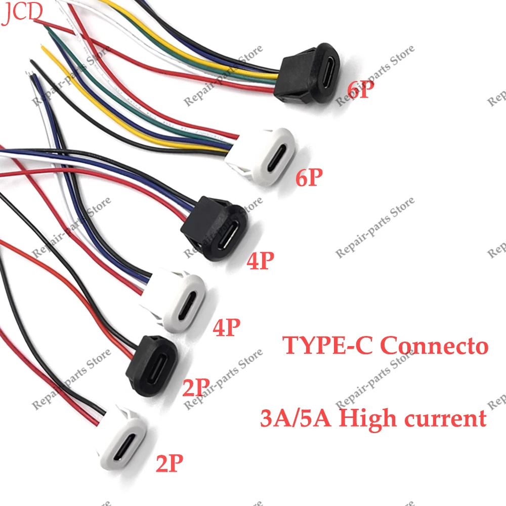 Conector USB impermeable tipo c de 2 y 4 6 pines, base hembra de compresión directa, interfaz de carga de enchufe hembra con Cable de soldadura, 1 ud.