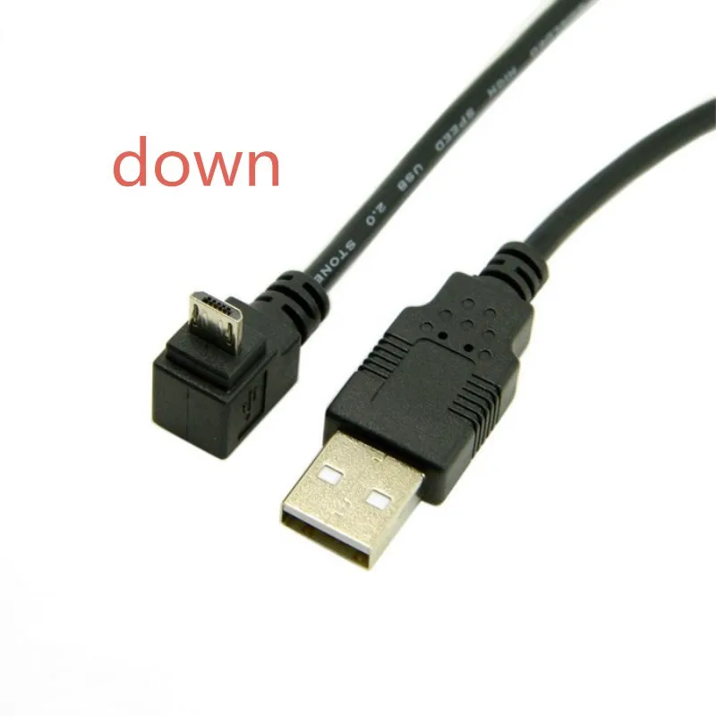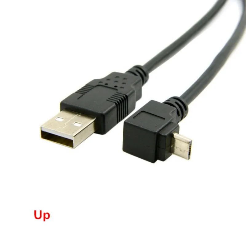 Arriba, abajo, izquierda y derecha en ángulo de 90 grados Micro USB macho a USB Cable de carga de datos para tableta
