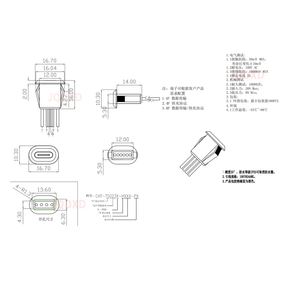 Conector USB tipo C hembra tipo C con hebilla de tarjeta 3A puerto Jack de carga rápida de alta corriente enchufe de cargador USB-C
