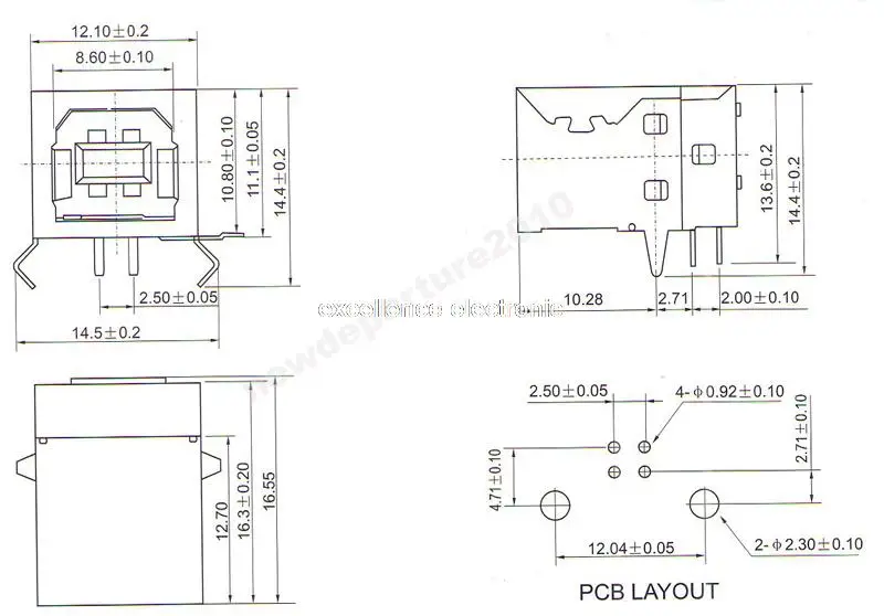 20 Uds. Conector usb tipo b puerto de impresora hembra conector PCB de ángulo recto DB90