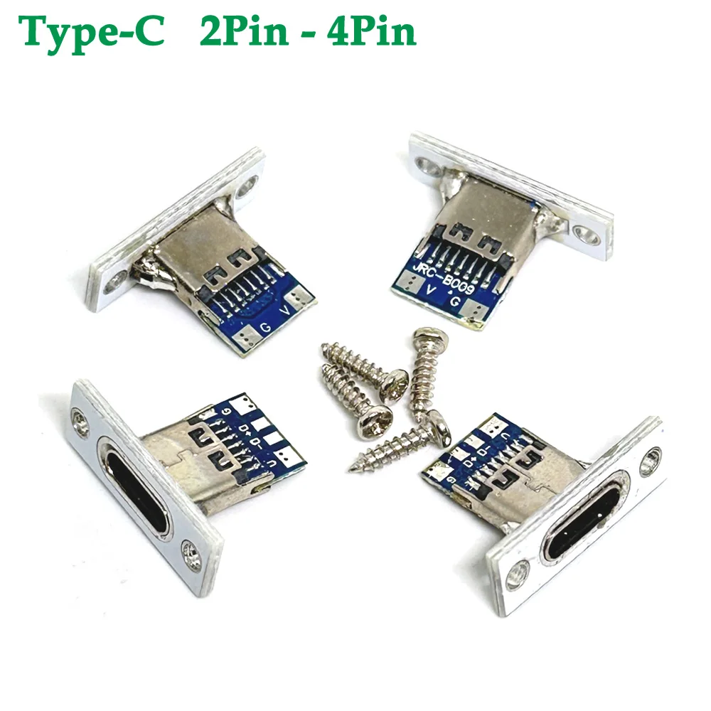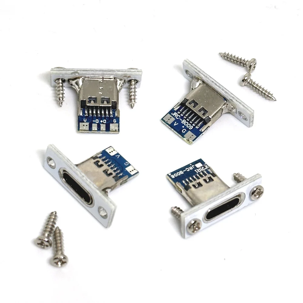 Conector USB tipo C, 2 pines, 4 pines con tornillos, tira impermeable, línea de junta de soldadura, conector hembra, puerto de carga USB, conector de enchufe