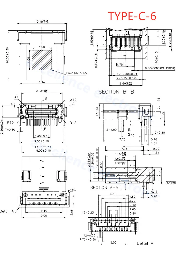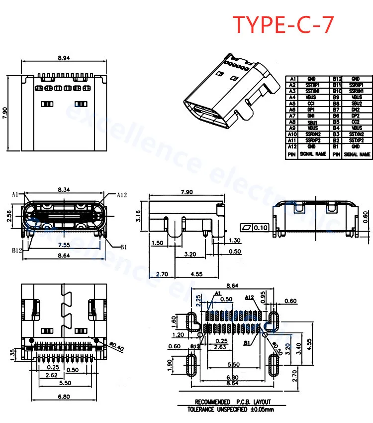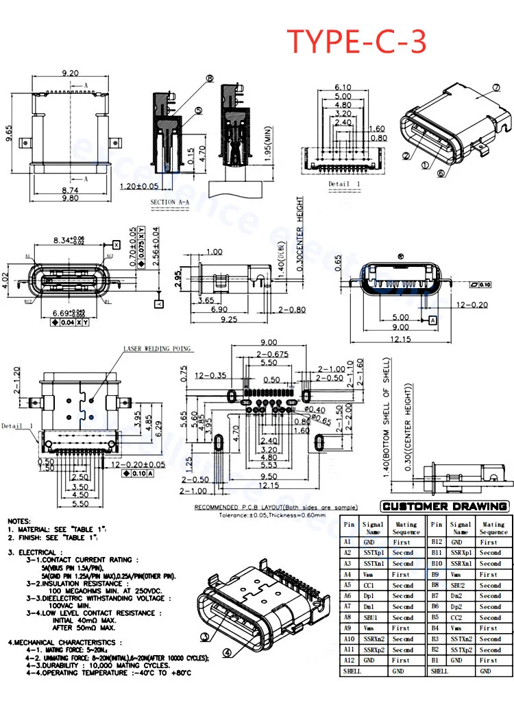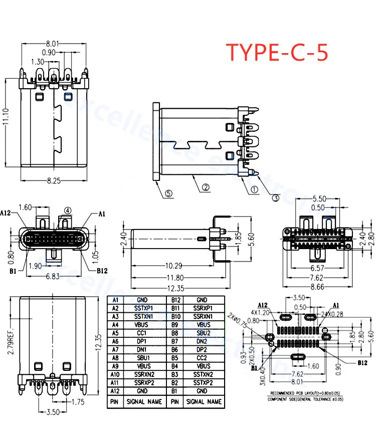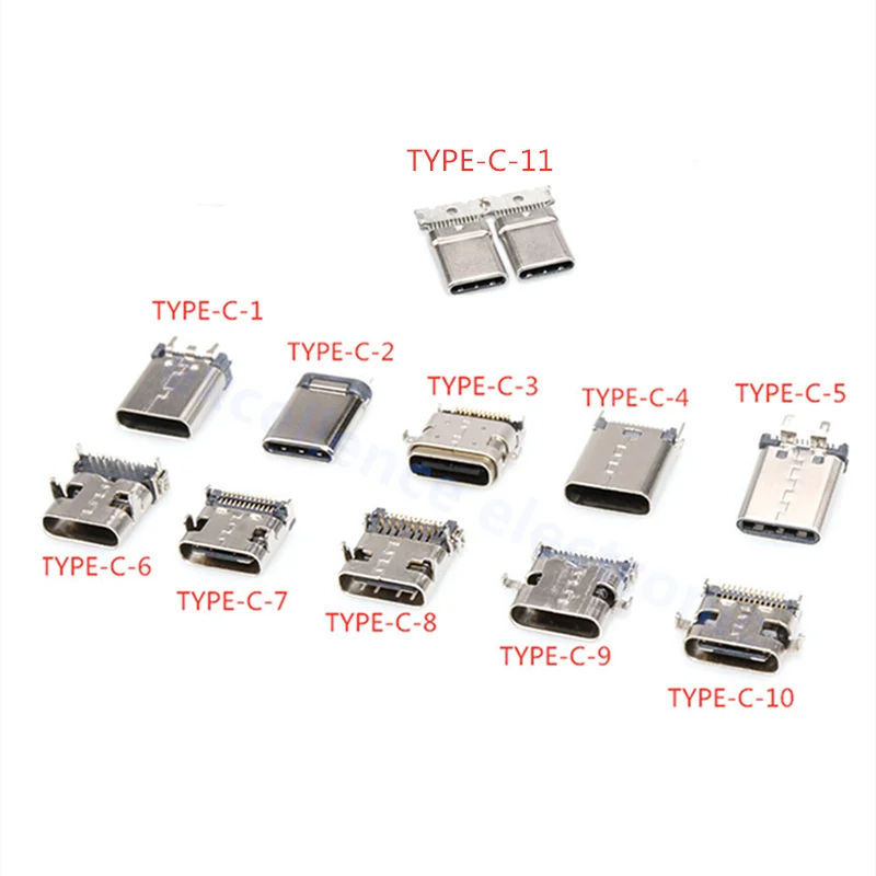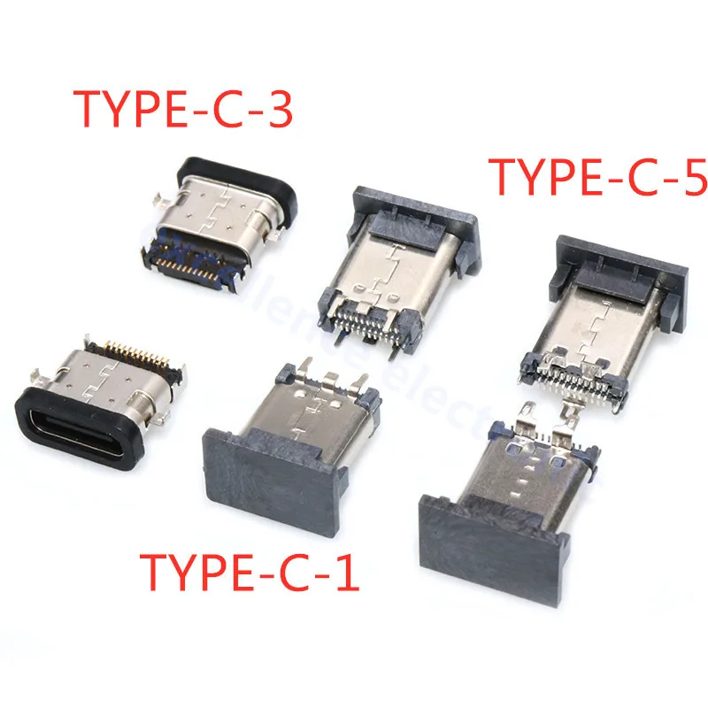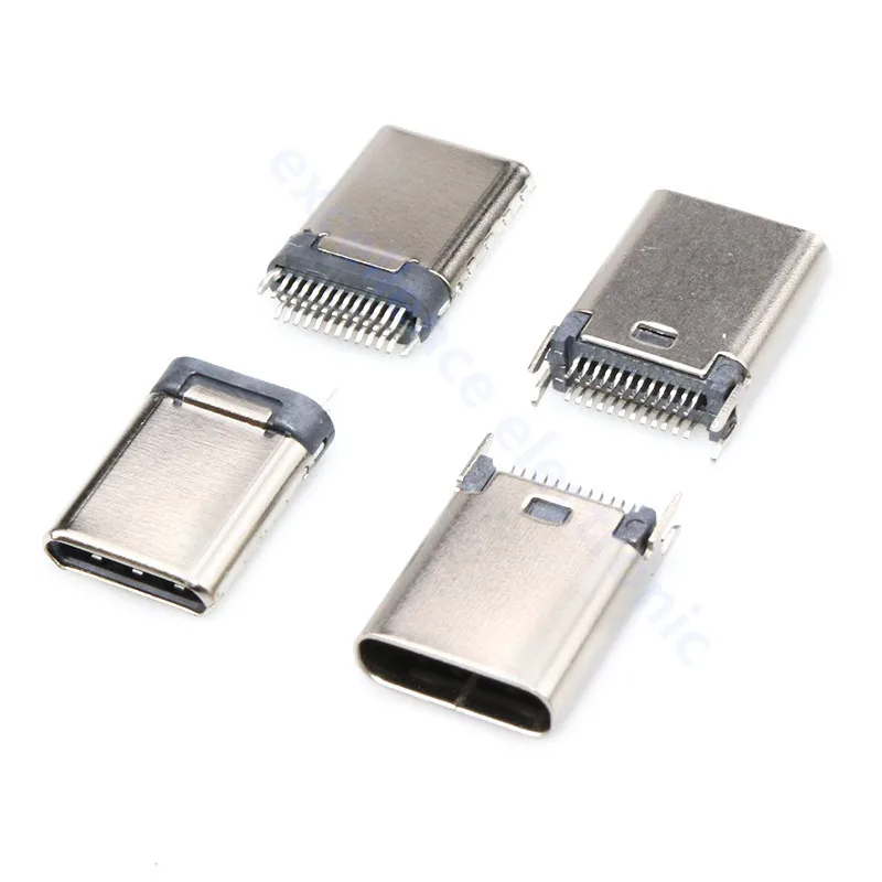 Comprar Conector USB tipo C 3,1 SMT, 24P, USB, montaje medio Horizontal, macho, hembra, placa pasante para adaptador de cargador, bricolaje, 5 uds.