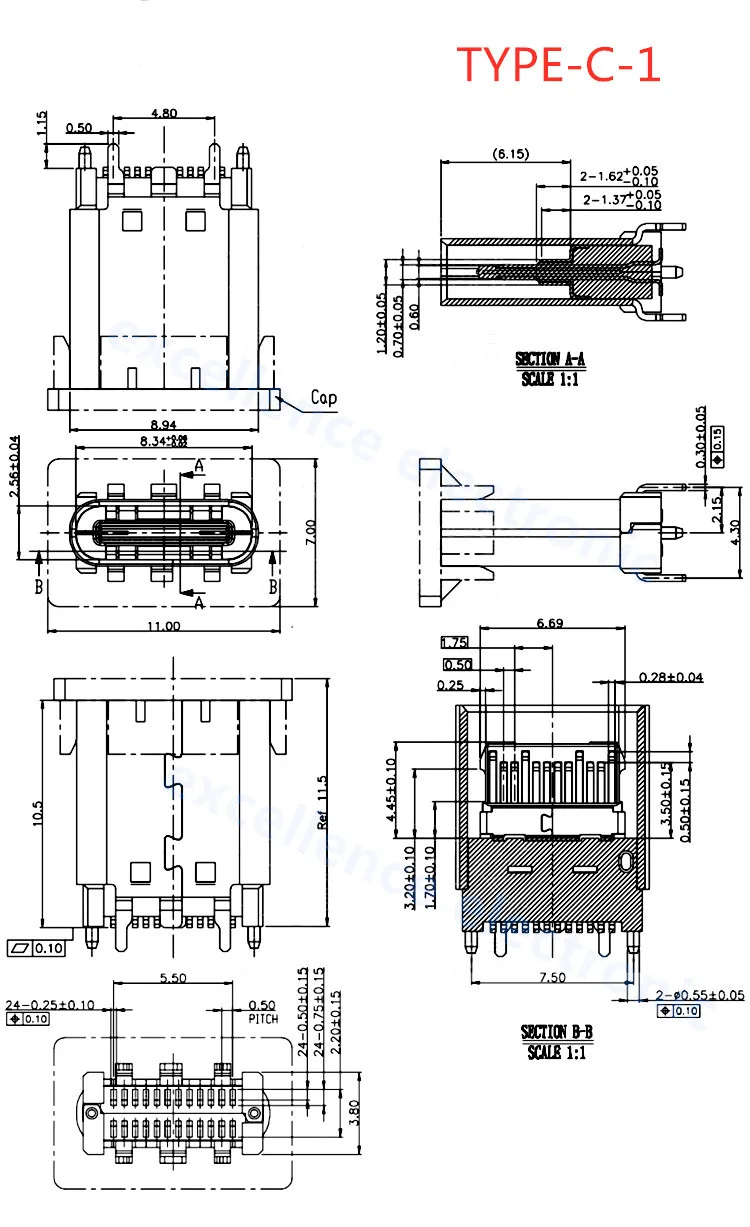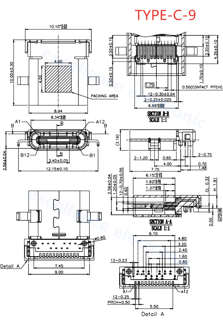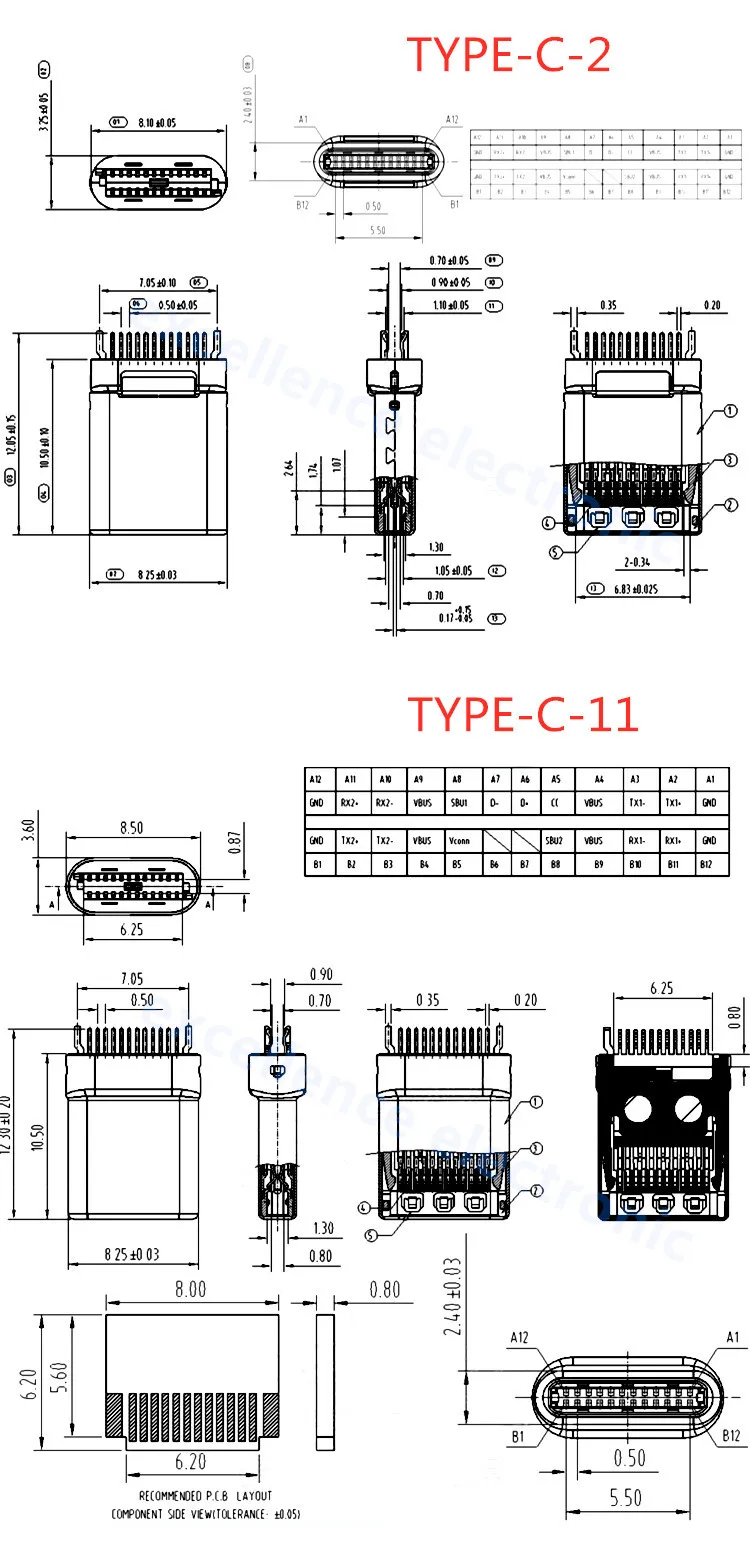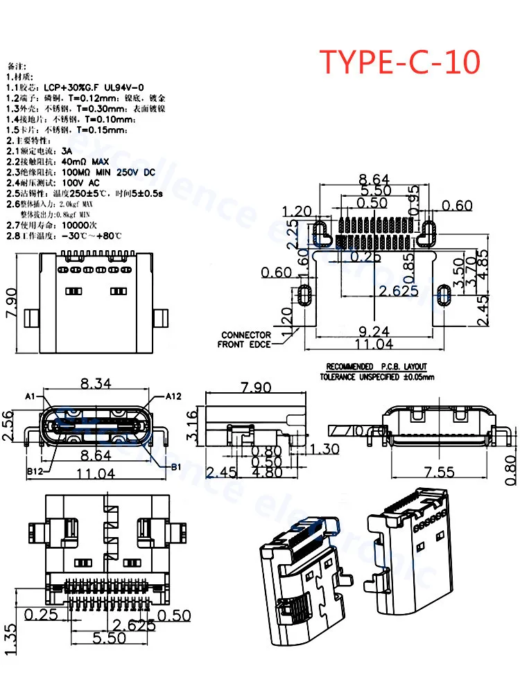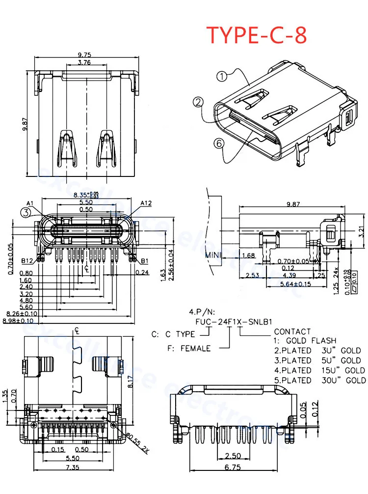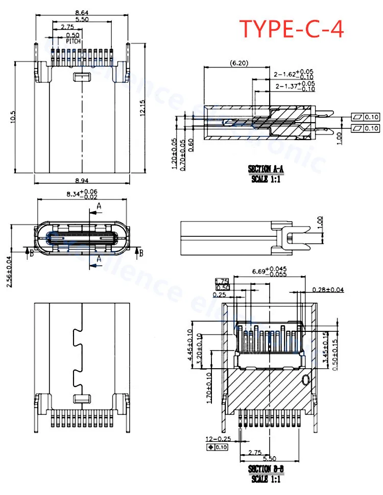 Comprar Conector USB tipo C 3,1 SMT, 24P, USB, montaje medio Horizontal, macho, hembra, placa pasante para adaptador de cargador, bricolaje, 5 uds.
