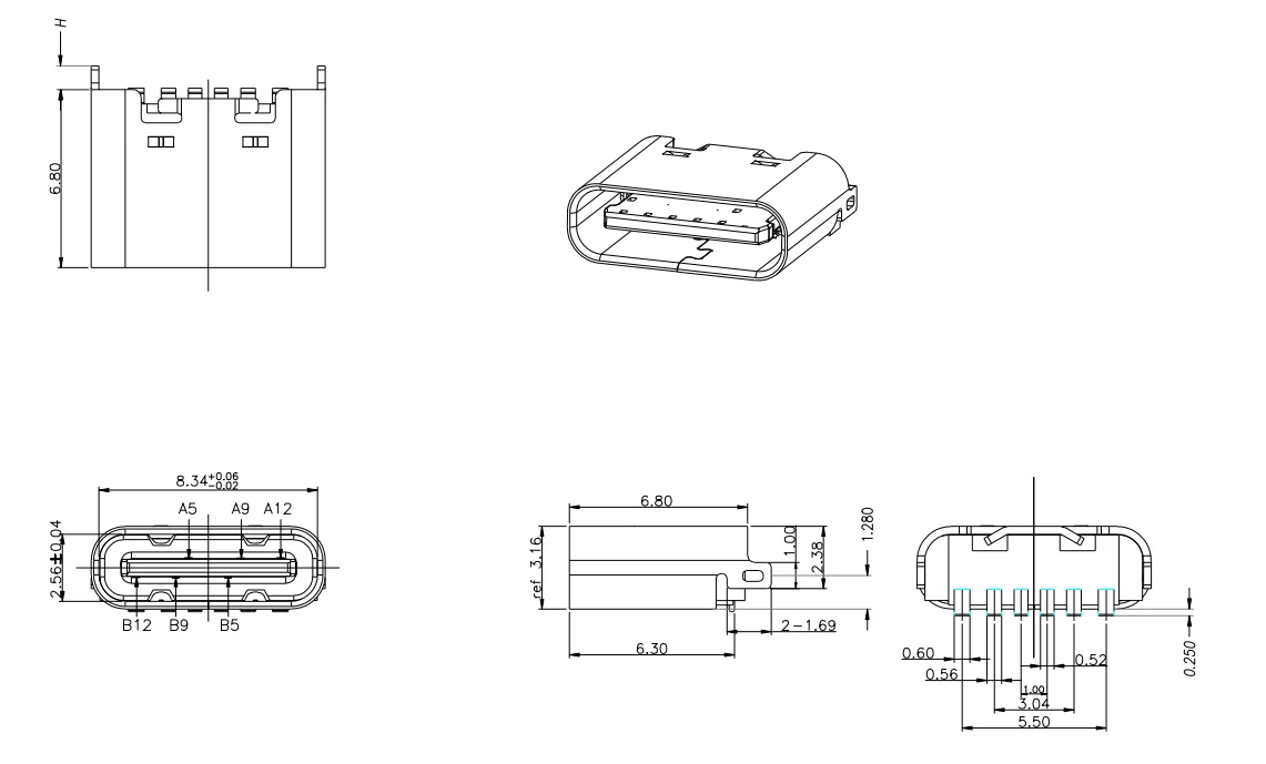 Conector USB tipo C de 5 piezas, dispositivo de carga rápida de alta corriente, 6 pines, hembra, USB 3,1, 3A, 6,8 H, para juguetes eléctricos/ventiladores, puerto de carga de auriculares