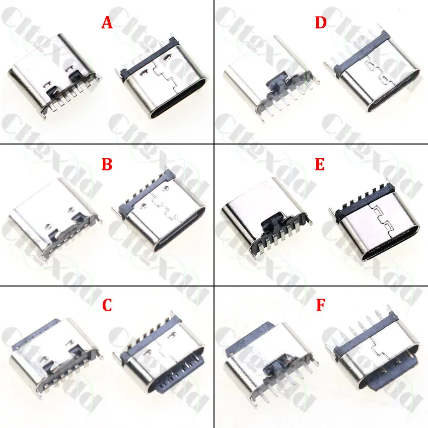 Comprar Conector USB tipo C de alta velocidad, conector hembra Vertical de 180 grados, 6P, 10 piezas, 5mm, 6mm, 6,9 MM, carga rápida, 3,1