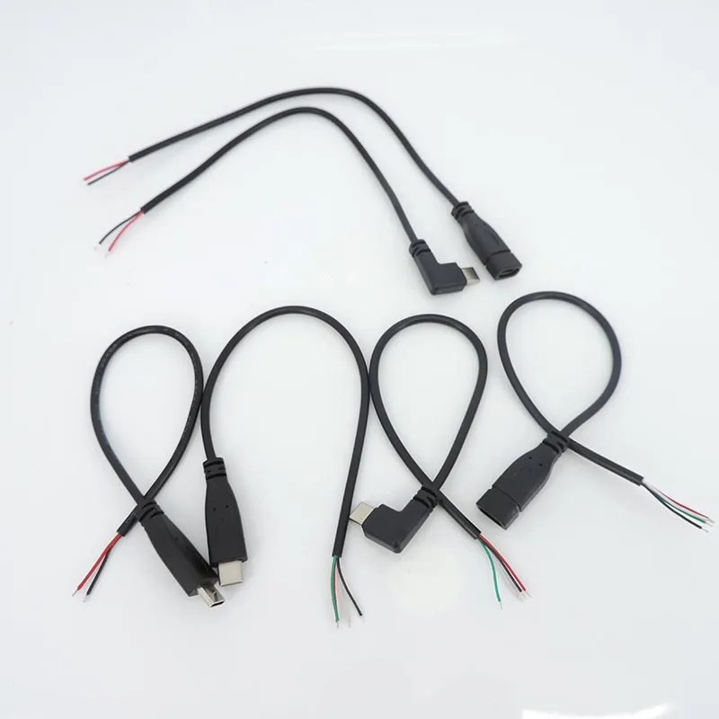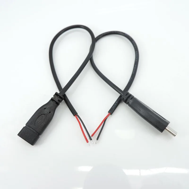 Conector USB tipo C macho hembra, conector de cargador de fuente de alimentación, 2 pines, 4 pines, USB-C, Cable de reparación DIY, Cable tipo soldadura 0,25M, 1M, 2M