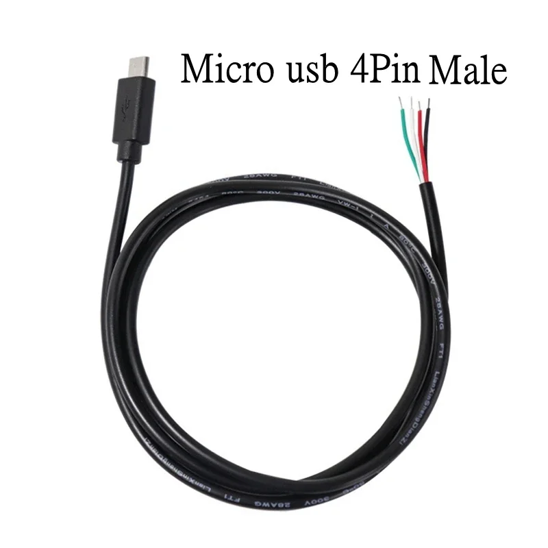 Micro USB 2,0 A hembra macho Jack Cable de extensión de fuente de alimentación 4 pines 2 pines 4 cables Cable de carga de línea de datos DIY Cable tipo C
