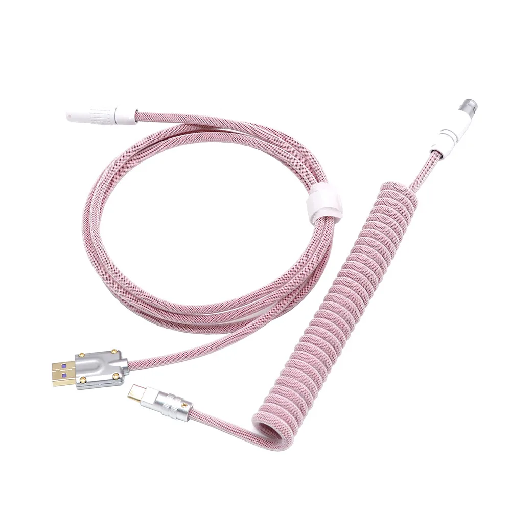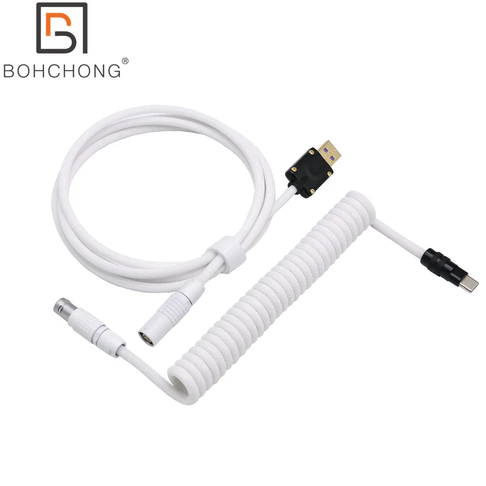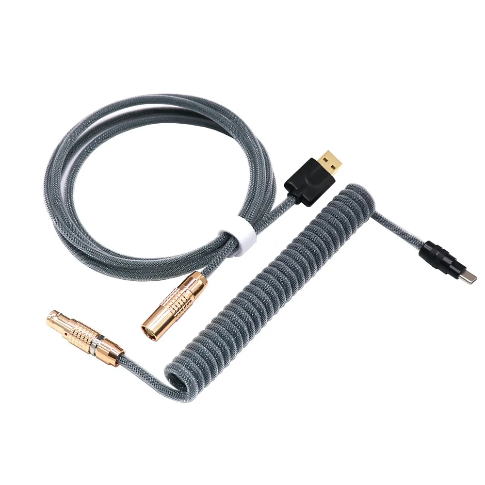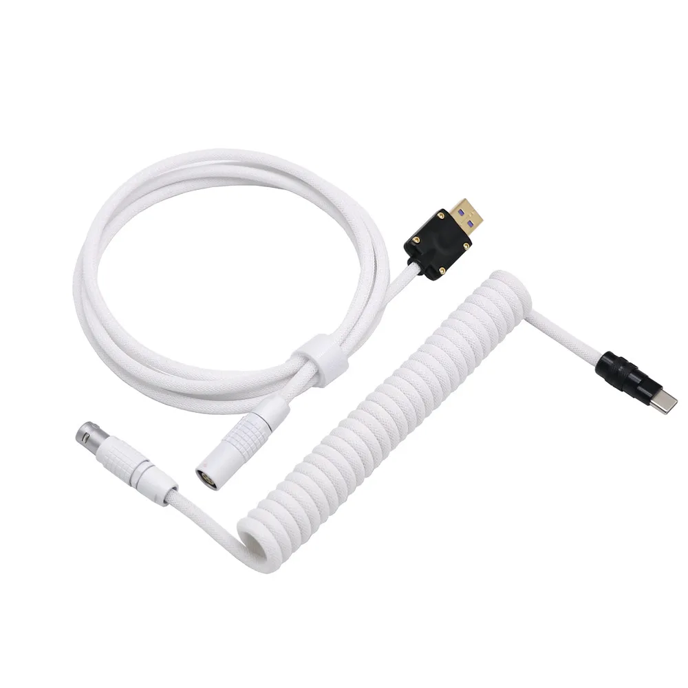 Negro Blanco 1B Metal chapado en oro negro USB tipo C enchufe Teclado mecánico para juegos Cable enrollado Mini Micro L o Cable de resorte espiral en forma de Z