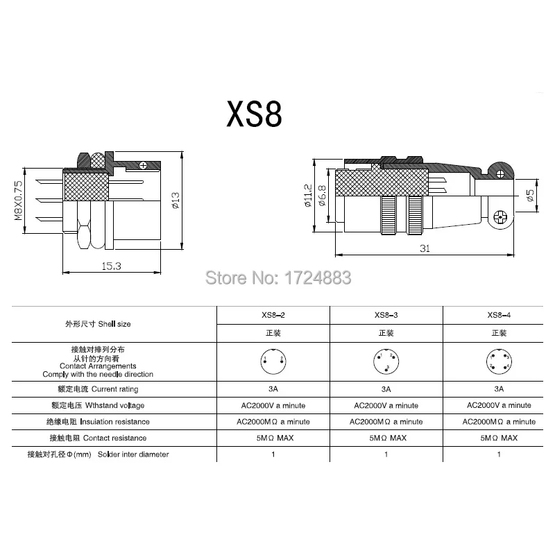 Comprar Conector XS8 de 8mm, conector de 2 pines, 3 pines, 4 pines, macho, hembra, juego completo de bloqueo automático