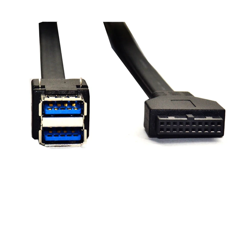 Conectores de 19 pines/20 pines hembra a doble USB 3,0 Panel frontal Cable de montaje en placa base de escritorio con pies fijos 30/50/80 cm