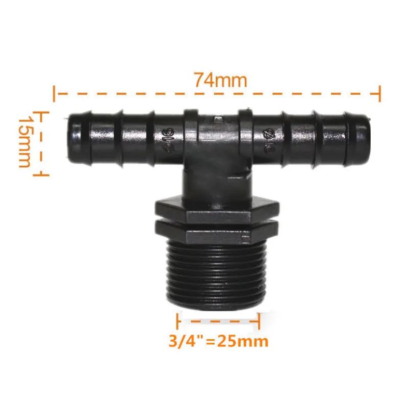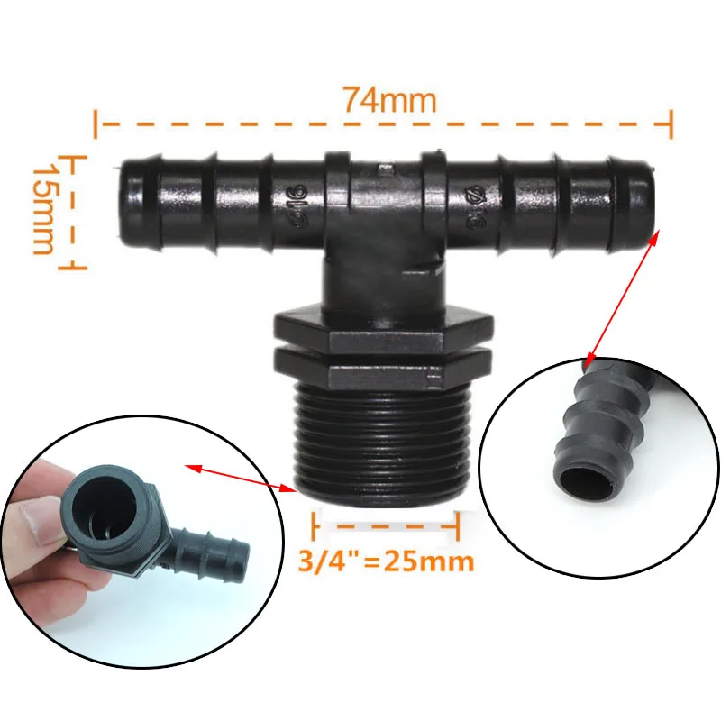 Conectores de 3/4", manguera de jardín, rosca de 25mm a 16PE, divisor de tubería de agua, T con púas, accesorios de Micro riego