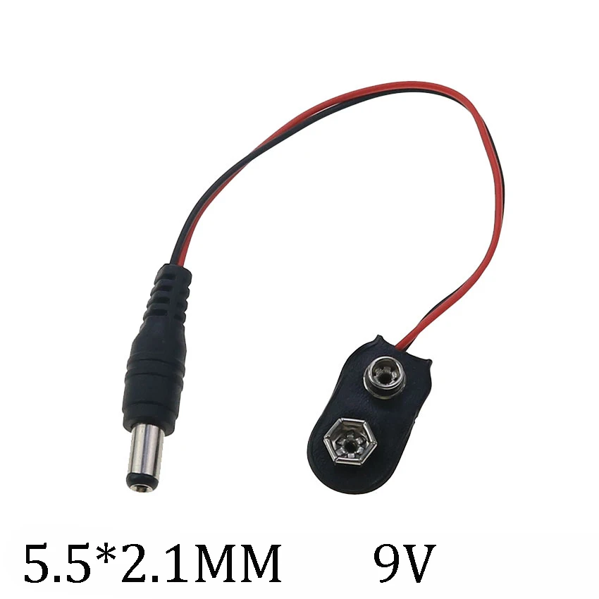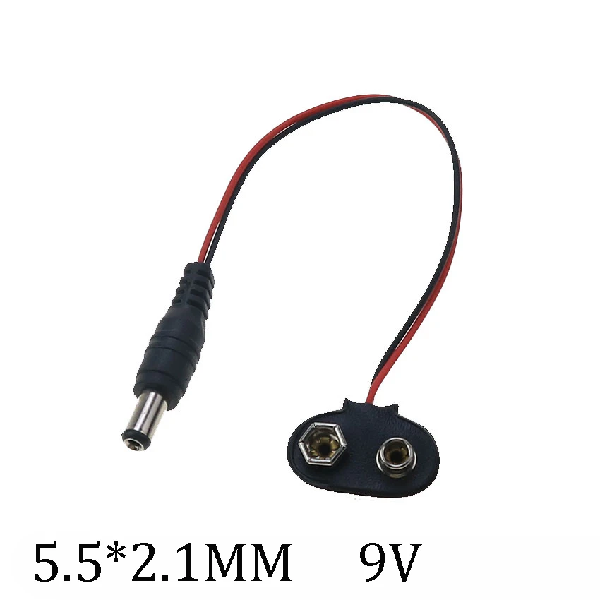 Comprar Conectores de alimentación de batería de 9V, tipo T I, cables de 9V, soportes de 15cm DC5.5 * 2,1 MM, cables, enchufes, hebillas de enchufe, 20 piezas