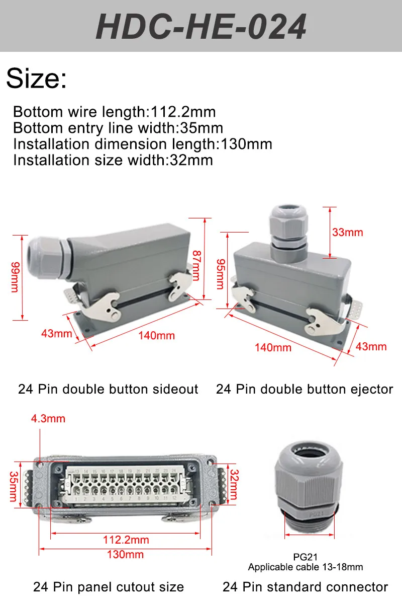 Comprar Conectores de alta resistencia HDC-HE-024-1/2/3/4 F/M 24 pines conector rectangular Industrial enchufe 16A 500V conexión de tornillo